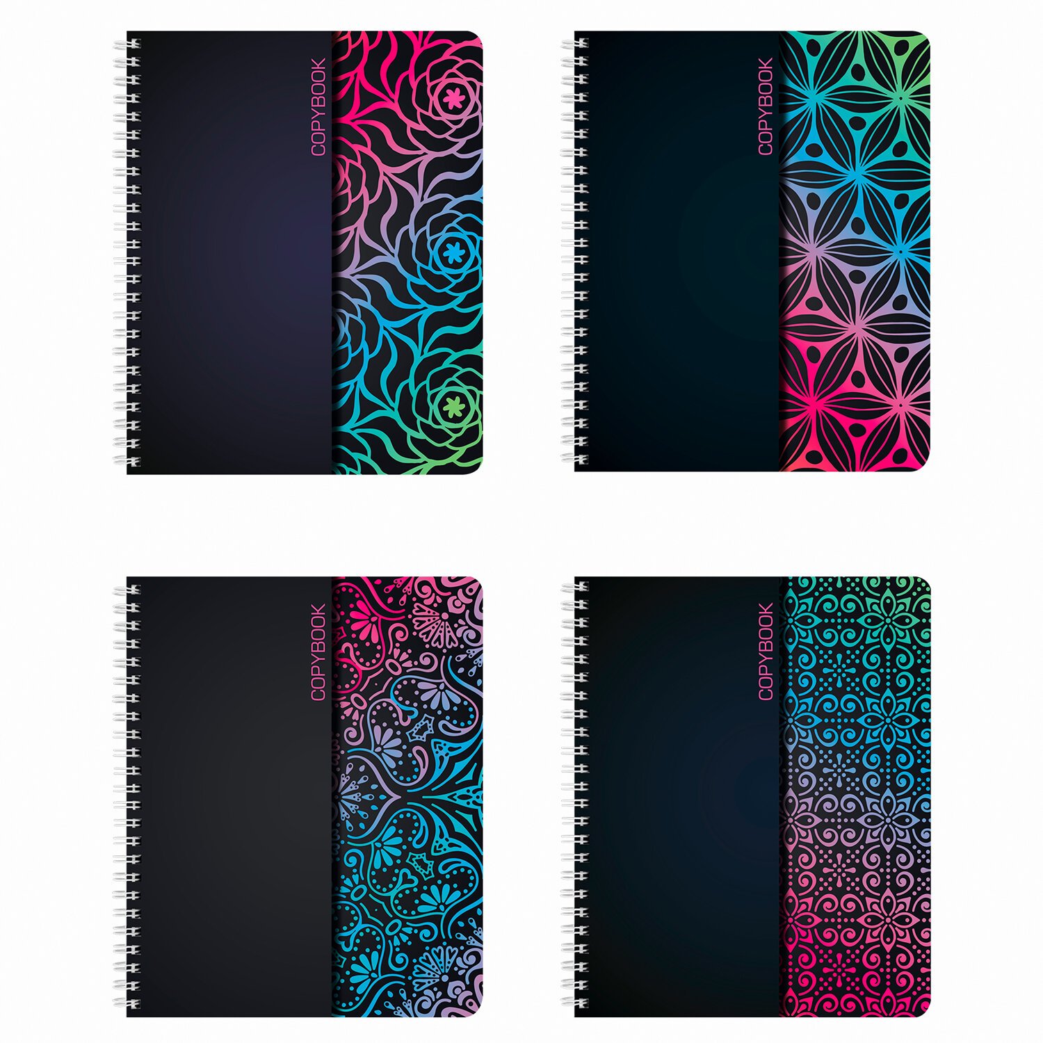Тетрадь А5 48 л. BRAUBERG, гребень, клетка, глянцевая ламинация, "Dark" (микс в спайке), 404341