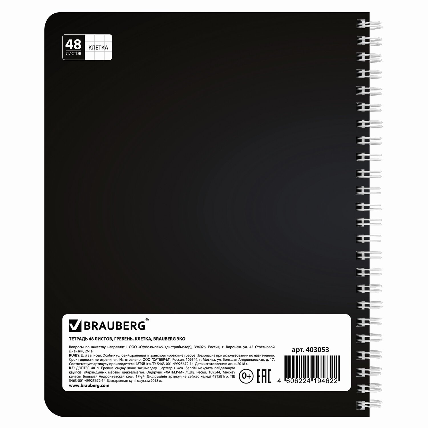 Тетрадь А5, 48 л., BRAUBERG, гребень, клетка, обложка картон, МОНОХРОМ 2, 402046