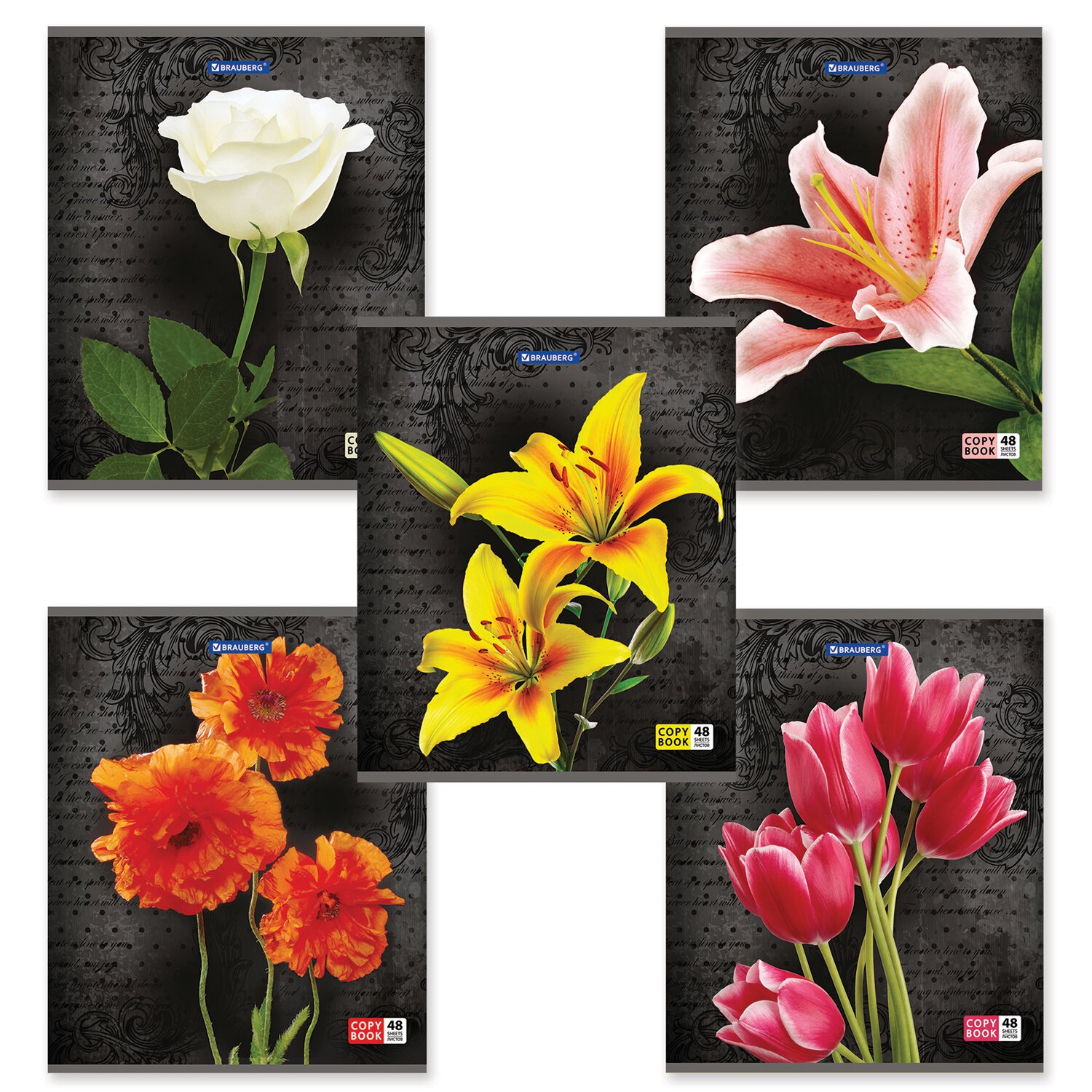Тетрадь А5, 48 л., BRAUBERG скоба, клетка, блестки, ЦВЕТЫ, 401839