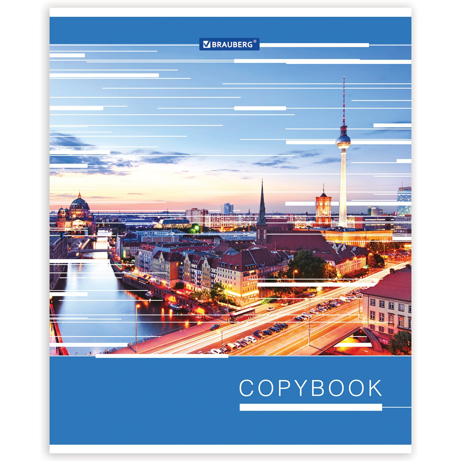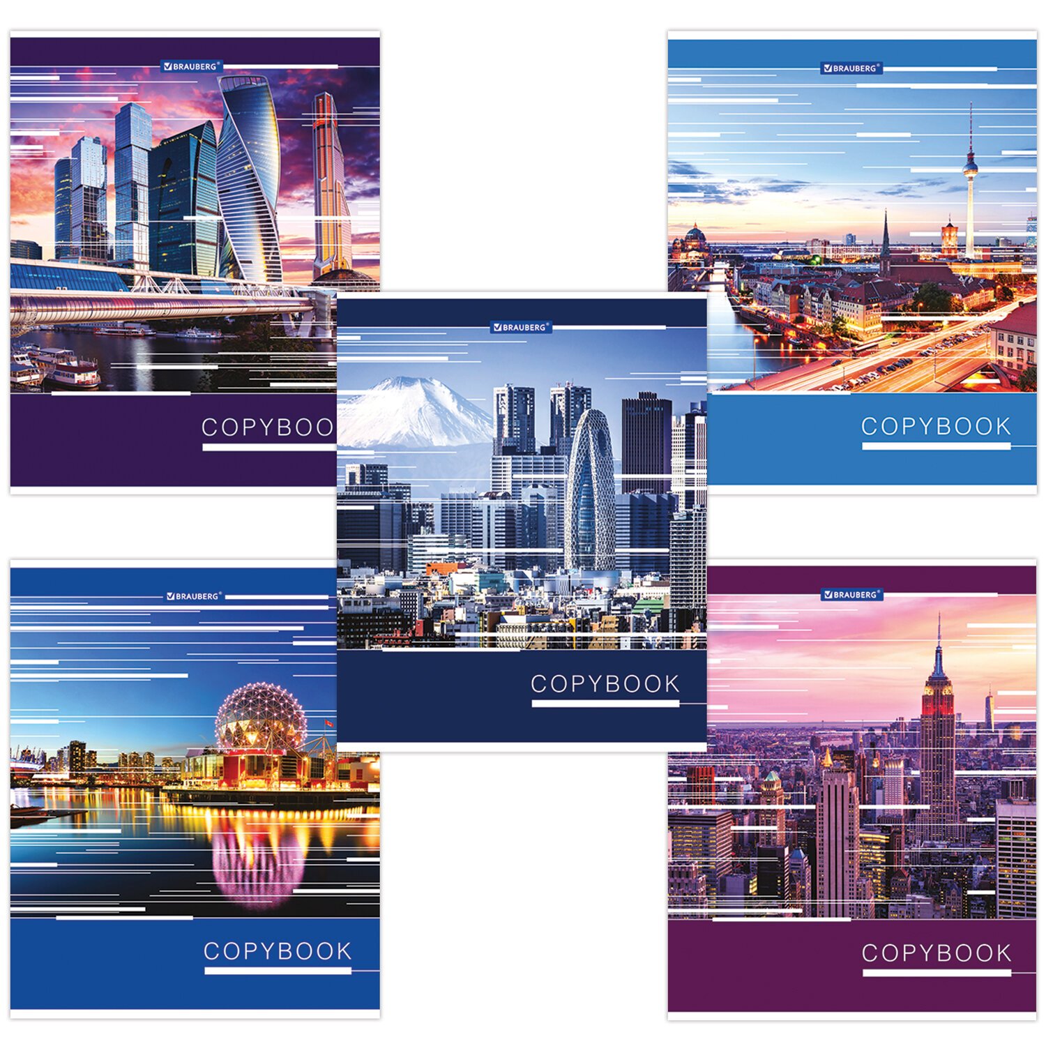 Тетрадь А5, 48 л., BRAUBERG скоба, клетка, металлизированный картон, ГОРОДА МИРА, 403044