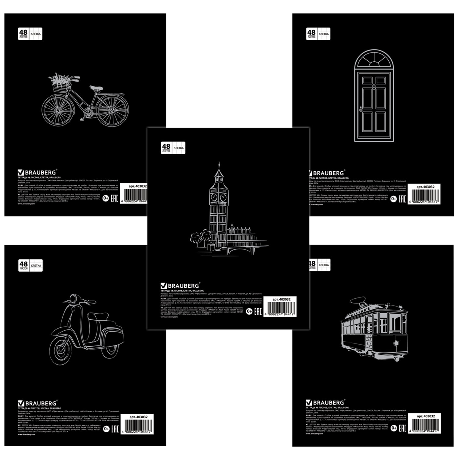 Тетрадь А5, 48 л., BRAUBERG скоба, клетка, обложка картон, АВТО, 401282