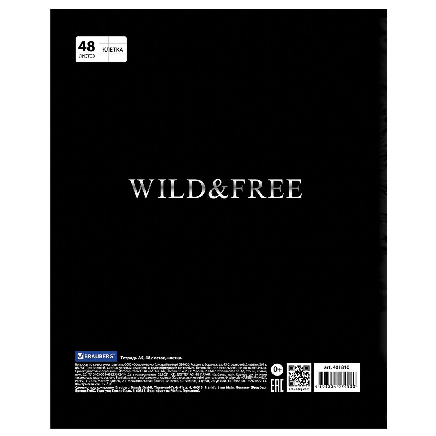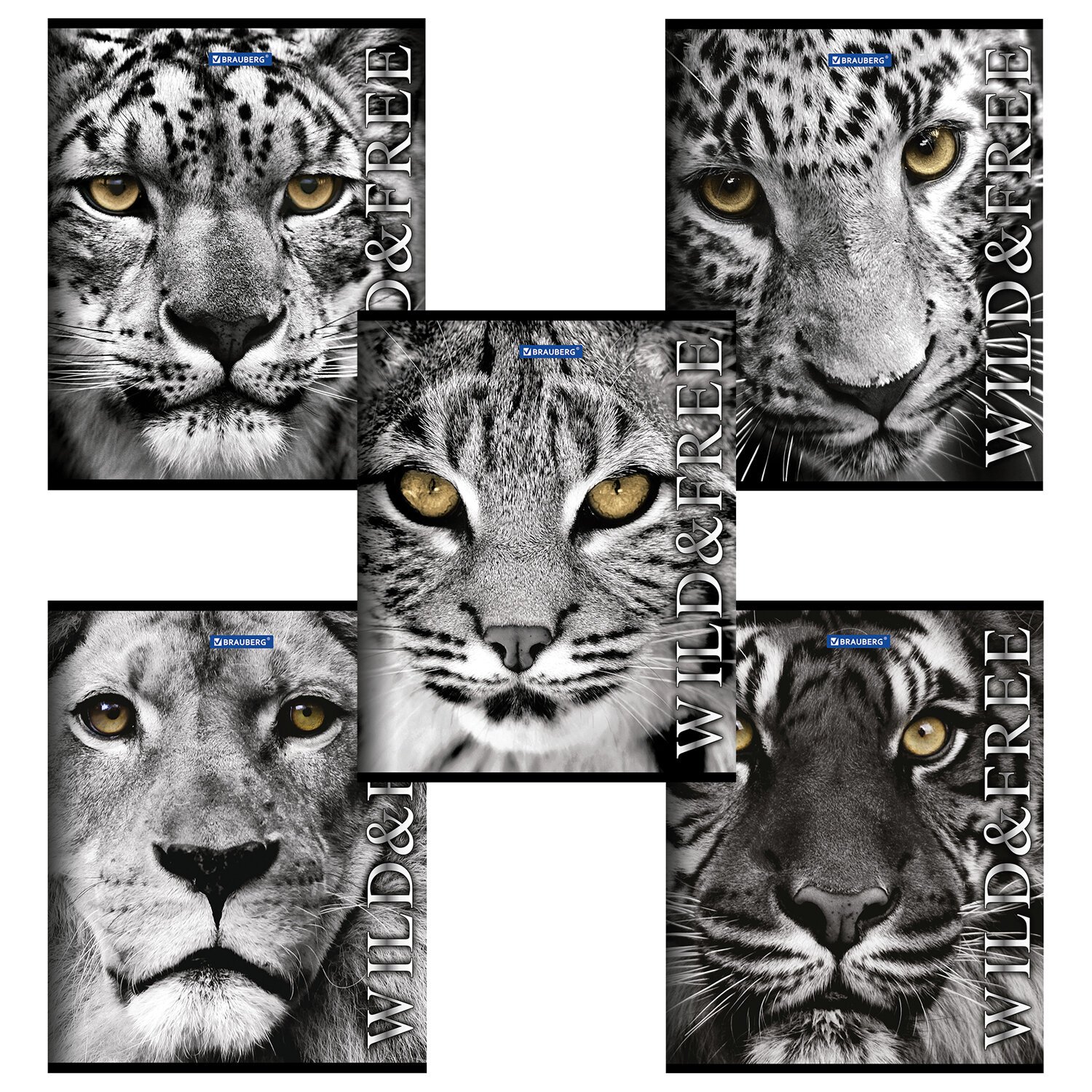 Тетрадь А5, 48 л., BRAUBERG скоба, клетка, обложка картон, ДИКИЕ И СВОБОДНЫЕ, 401810