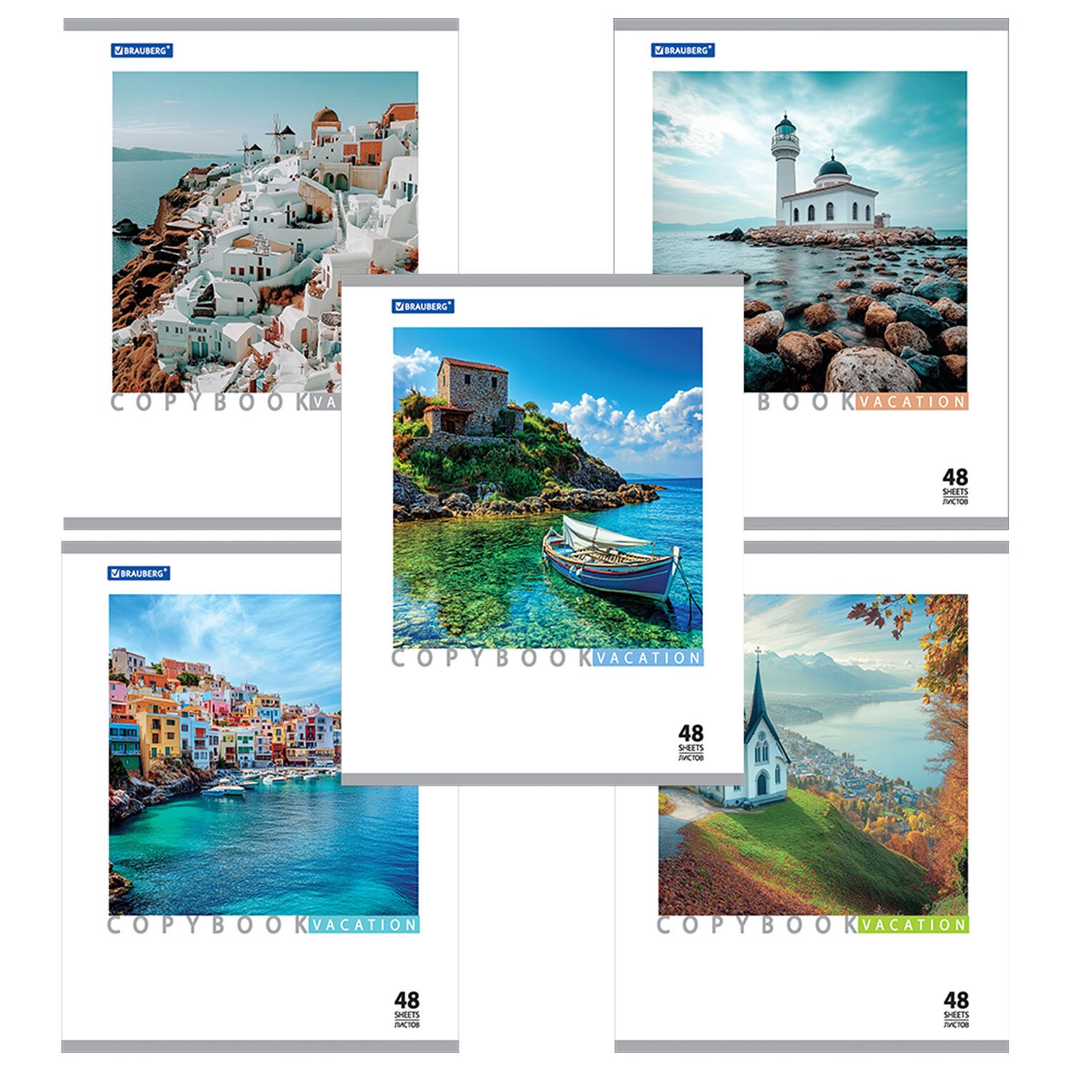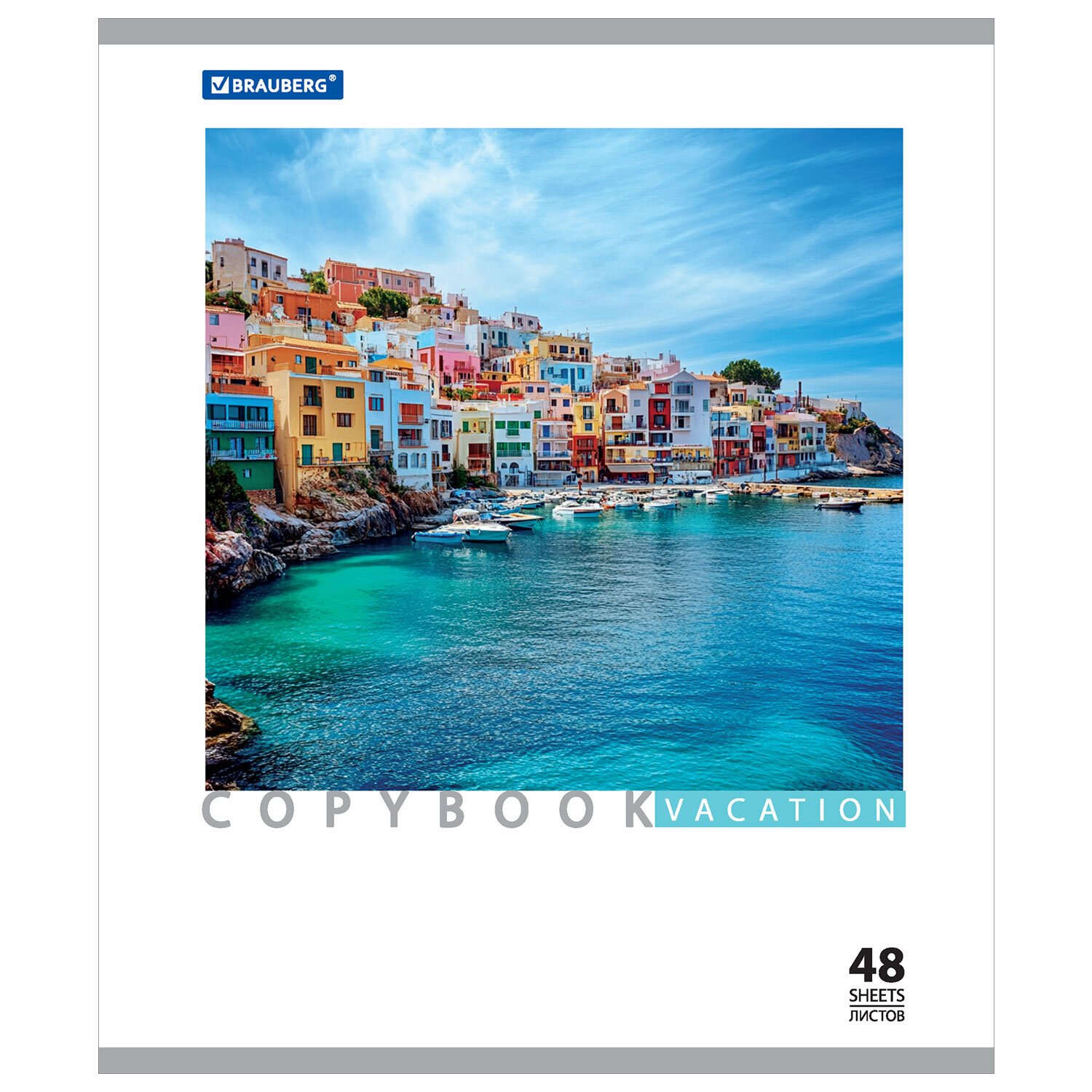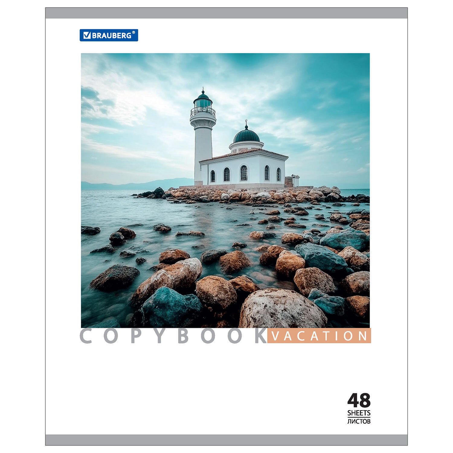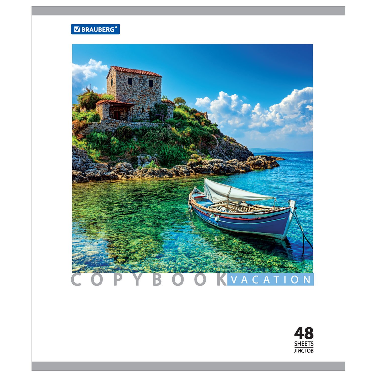 Тетрадь А5, 48 л., BRAUBERG скоба, клетка, обложка картон, КАНИКУЛЫ, 401819