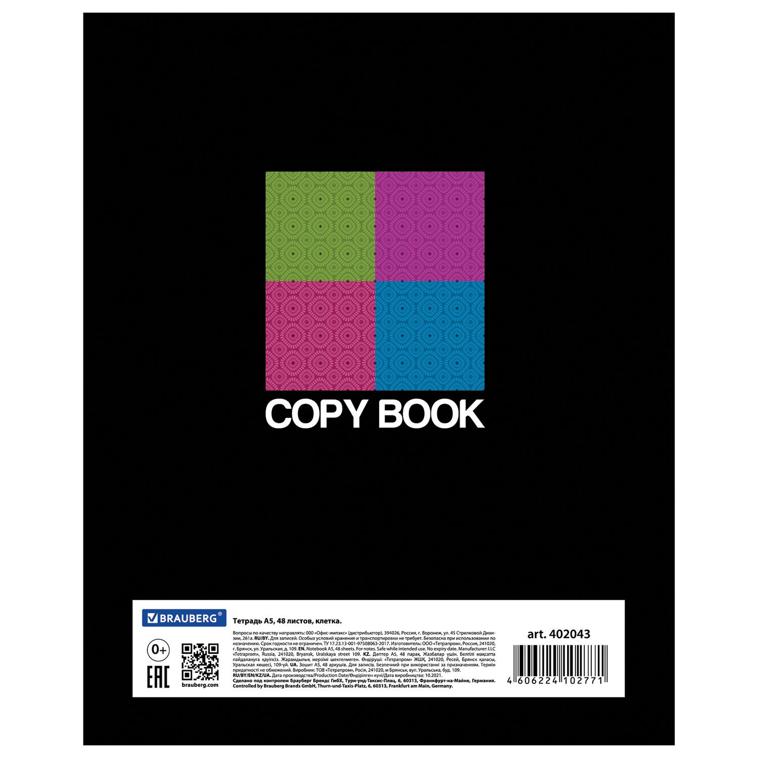 Тетрадь А5, 48 л., BRAUBERG, скоба, клетка, обложка картон, МОНОХРОМ 2, 402043