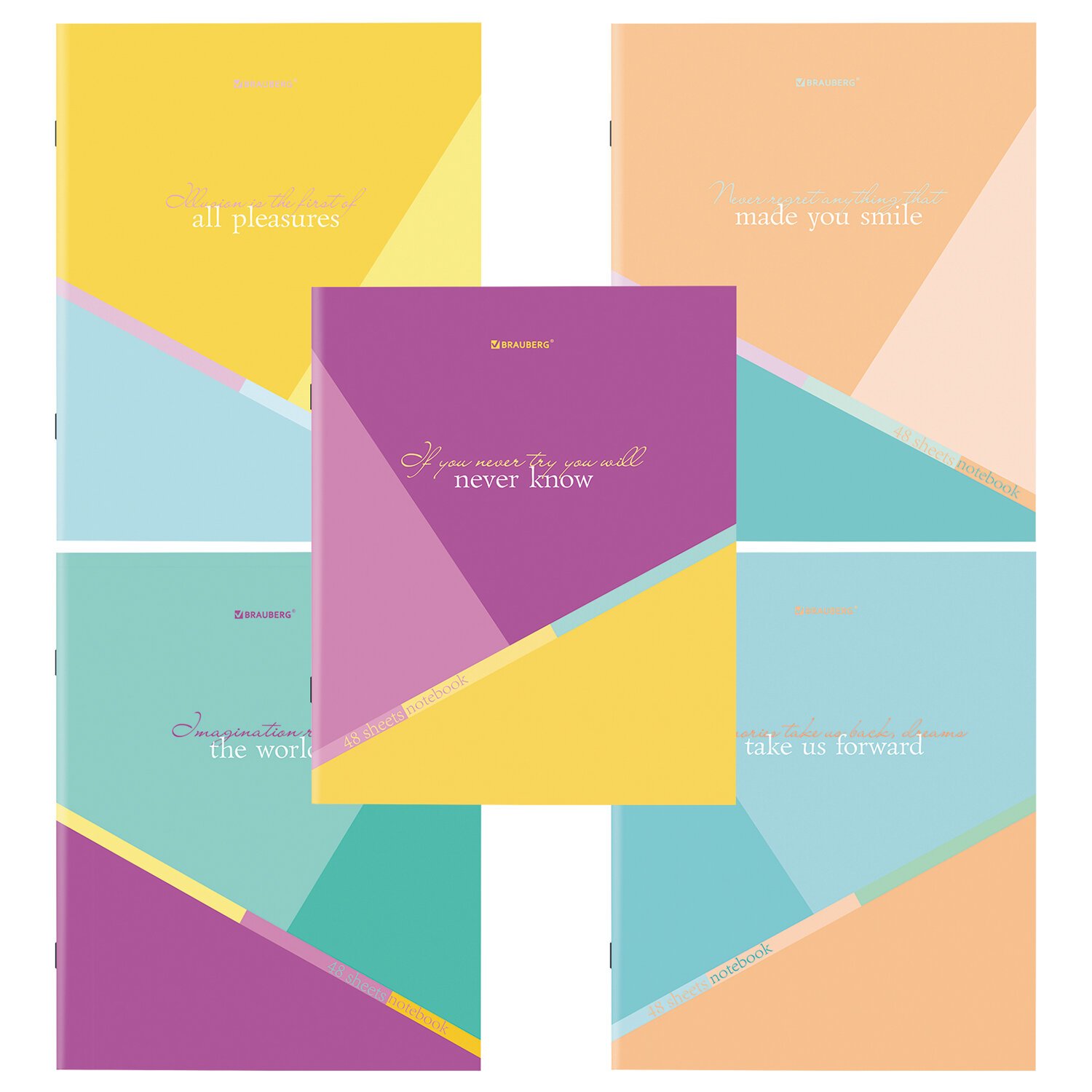 Тетрадь А5 48 л. BRAUBERG скоба, клетка, обложка картон, "Multicolor" (микс в спайке), 404361