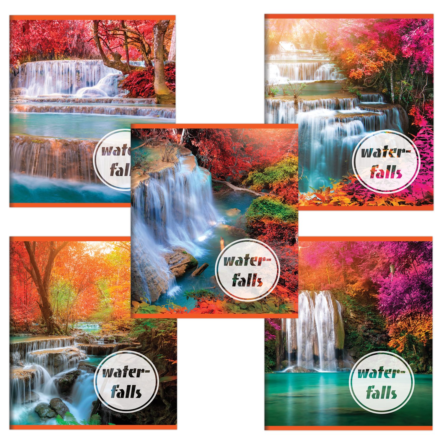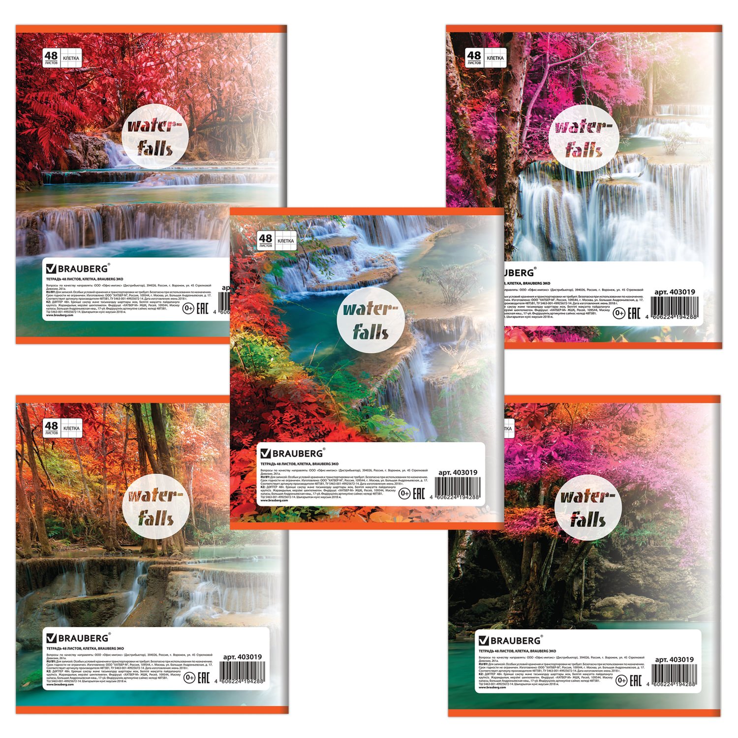 Тетрадь А5, 48 л., BRAUBERG скоба, клетка, обложка картон, ВОДОПАДЫ, 403019