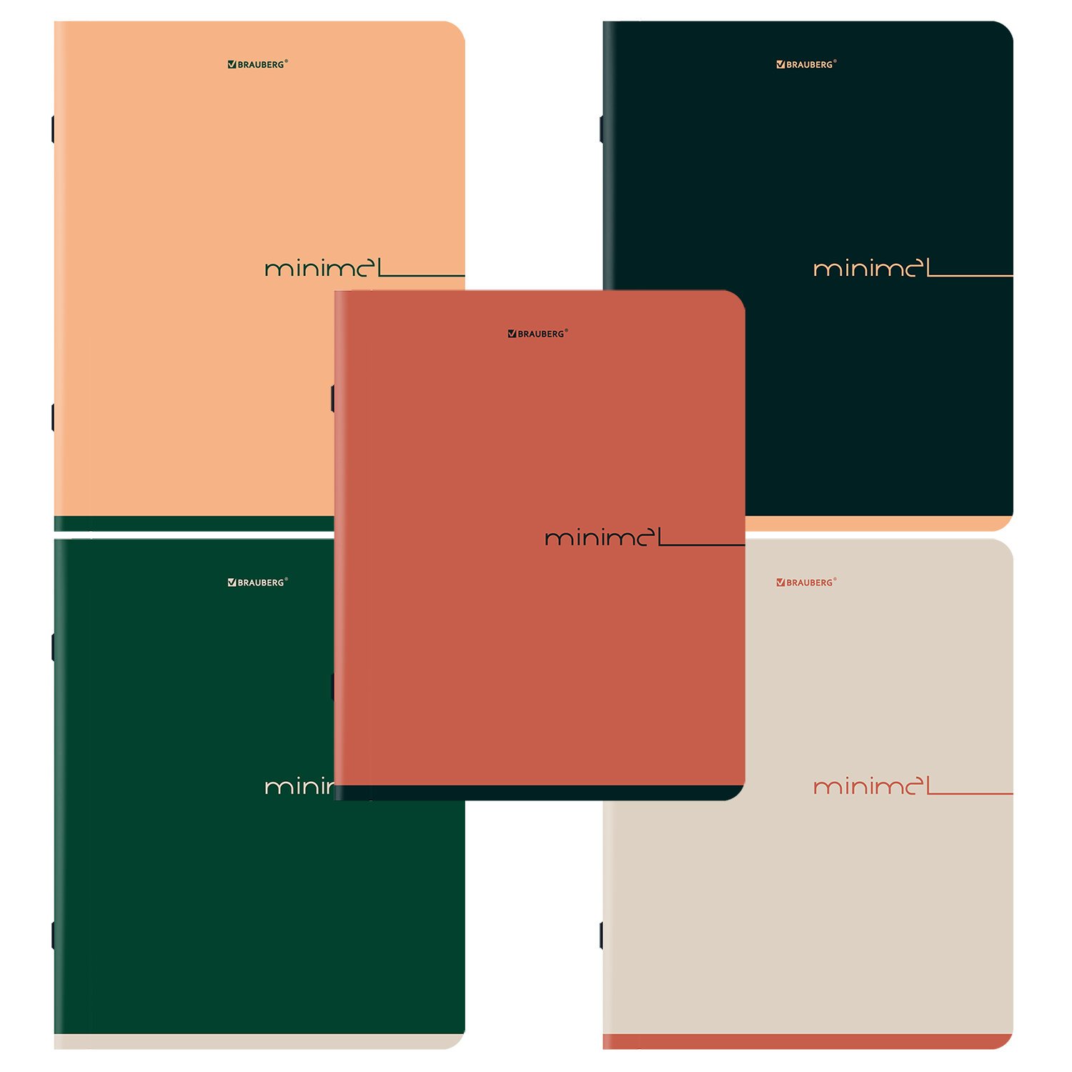 Тетрадь А5, 48 л., BRAUBERG, скоба, клетка, SoftTouch, "Минимал_Цвет", (микс в спайке), 405329