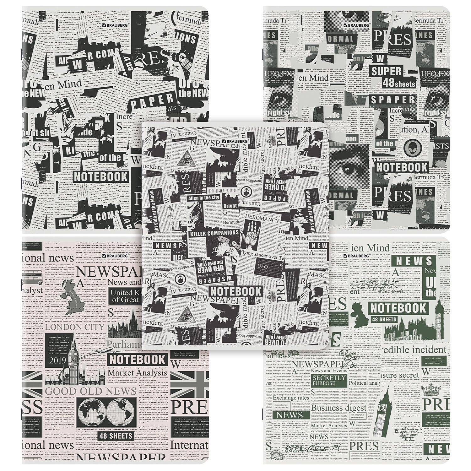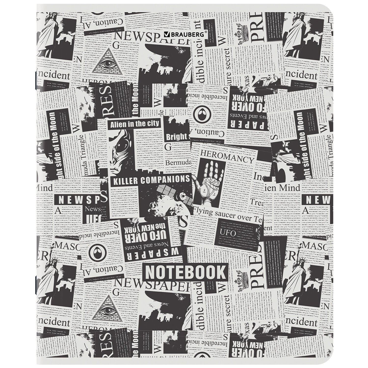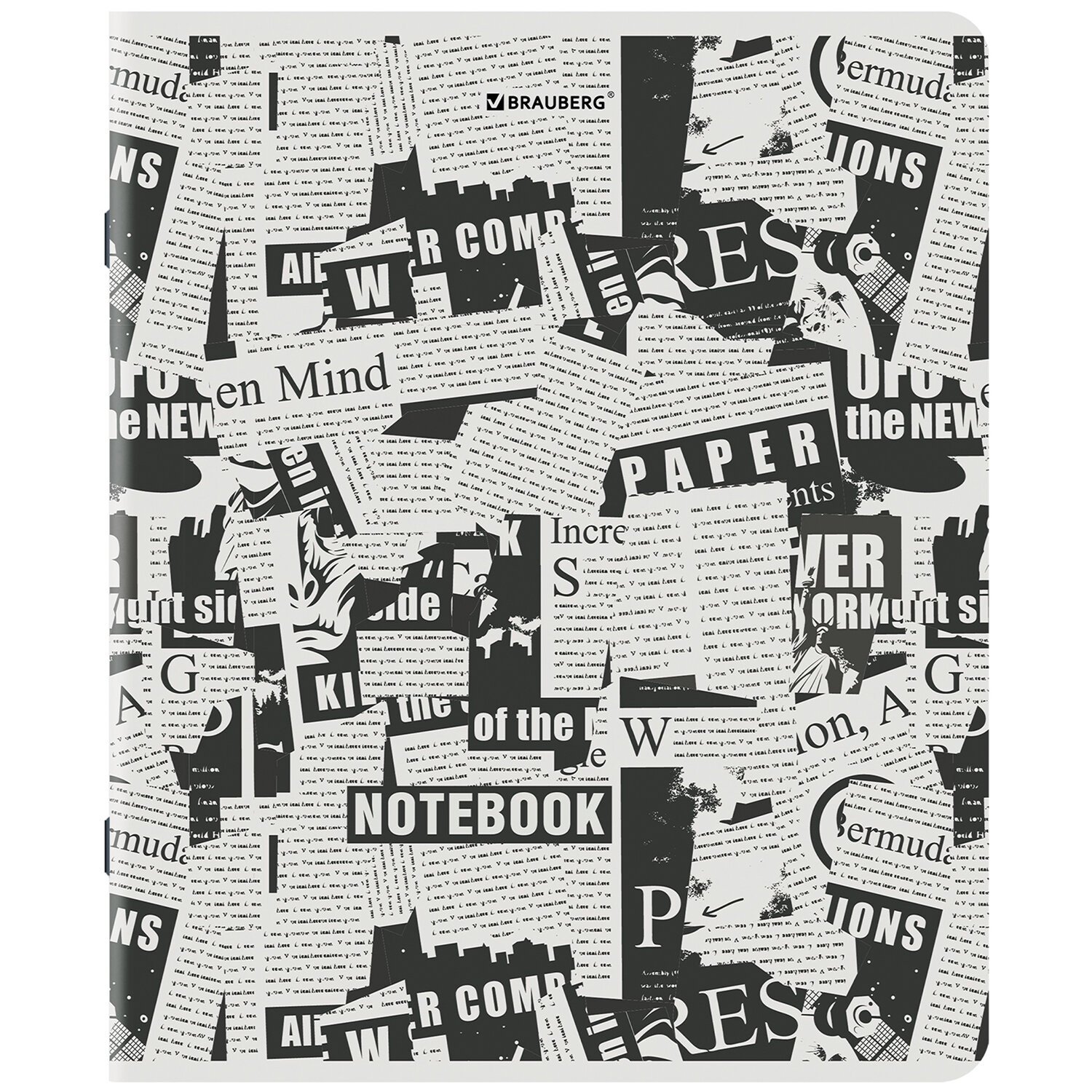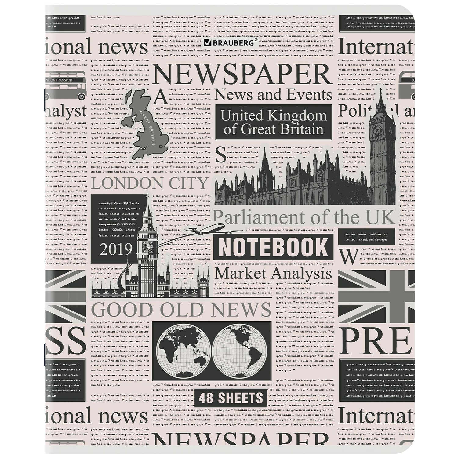 Тетрадь А5, 48 л., BRAUBERG, скоба, клетка, TWIN-лак, "Газета" (микс в спайке), 404356