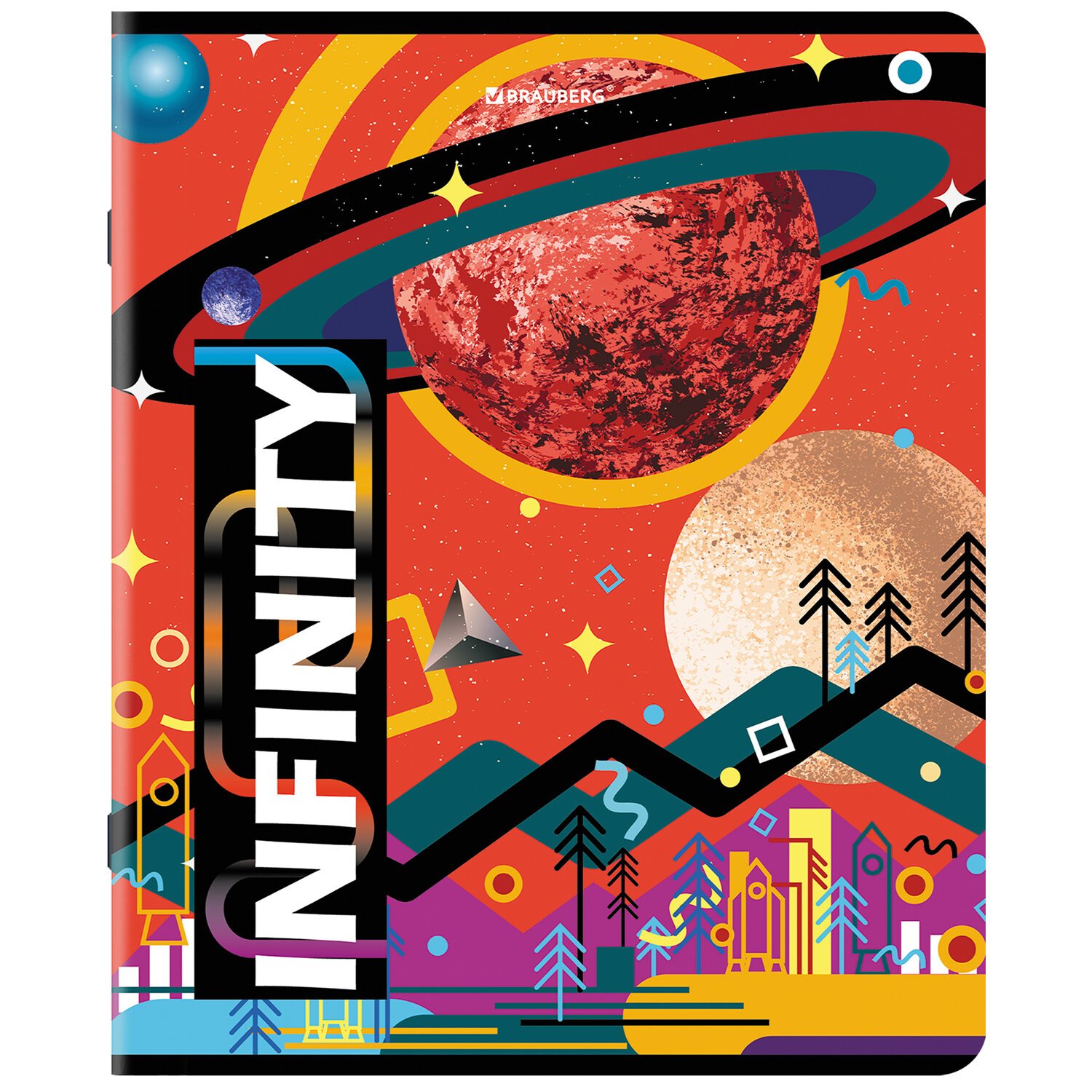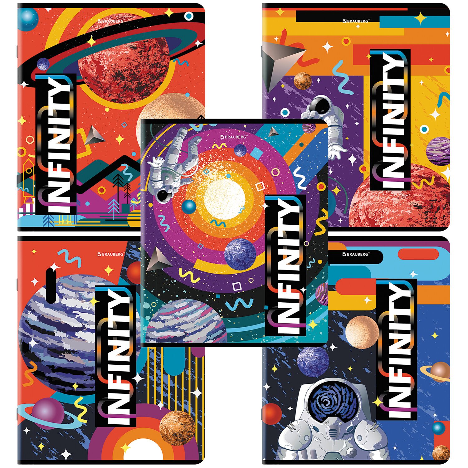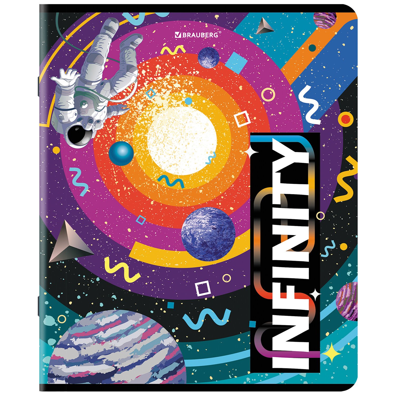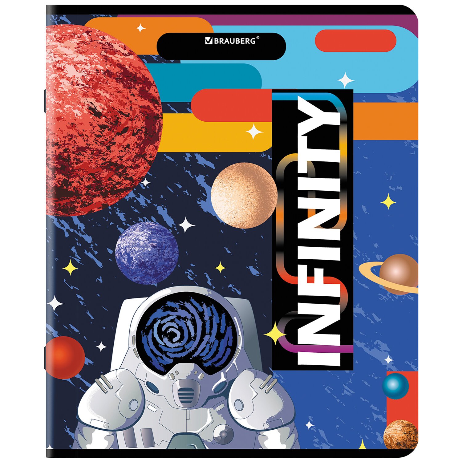 Тетрадь А5, 48 л., BRAUBERG, скоба, клетка, TWIN-лак, "SpaceX" (микс в спайке), 404354