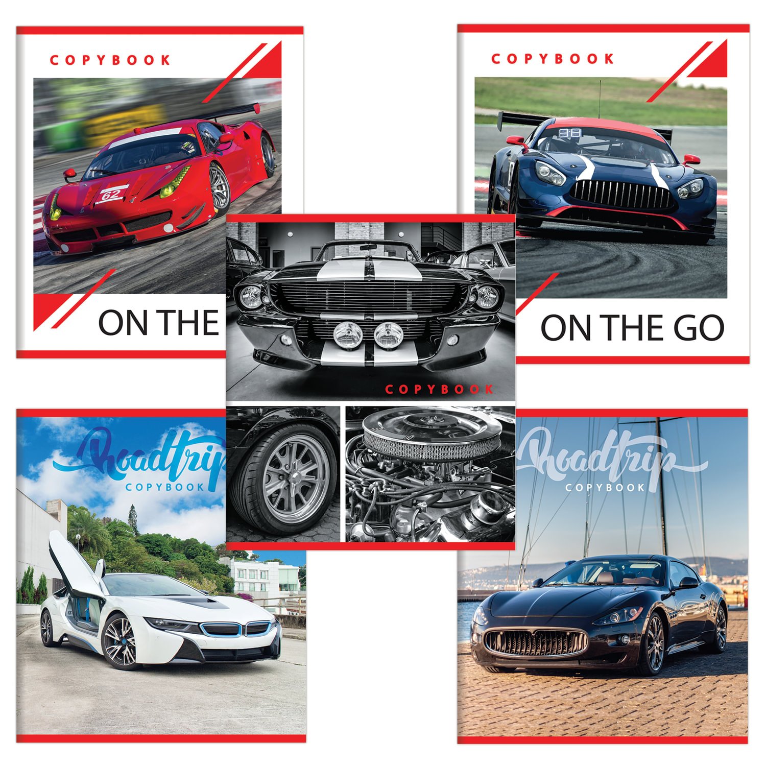 Тетрадь А5, 48 л., BRAUBERG, скоба, линия, обложка картон, СПОРТКАРЫ, 403027