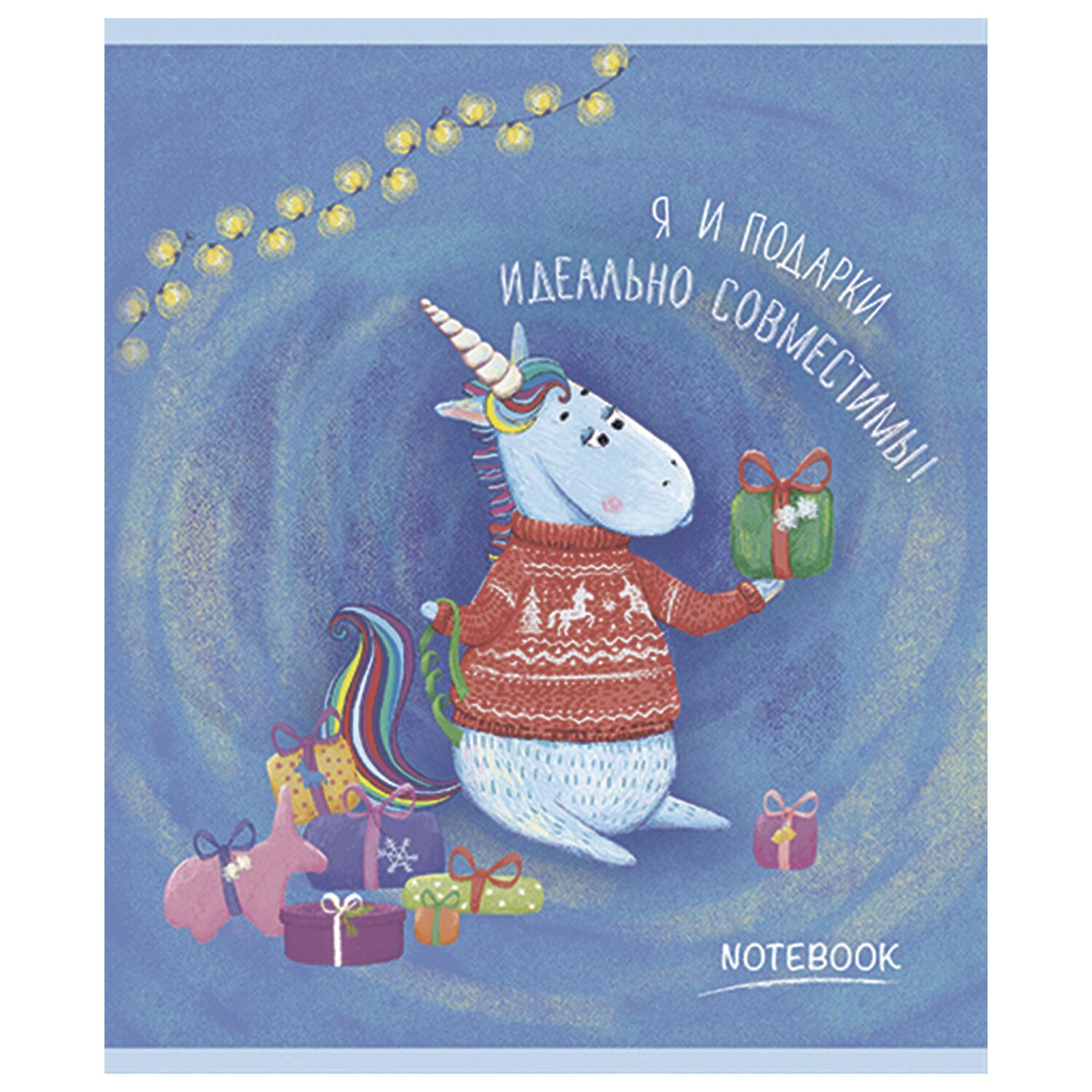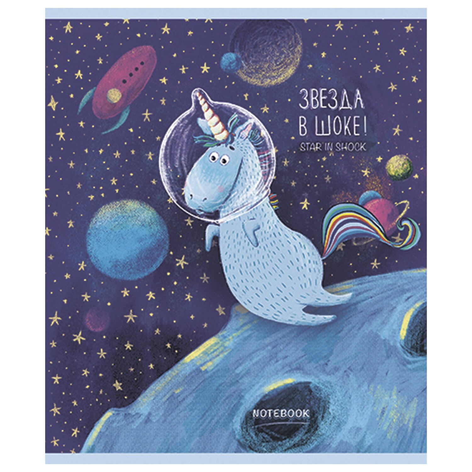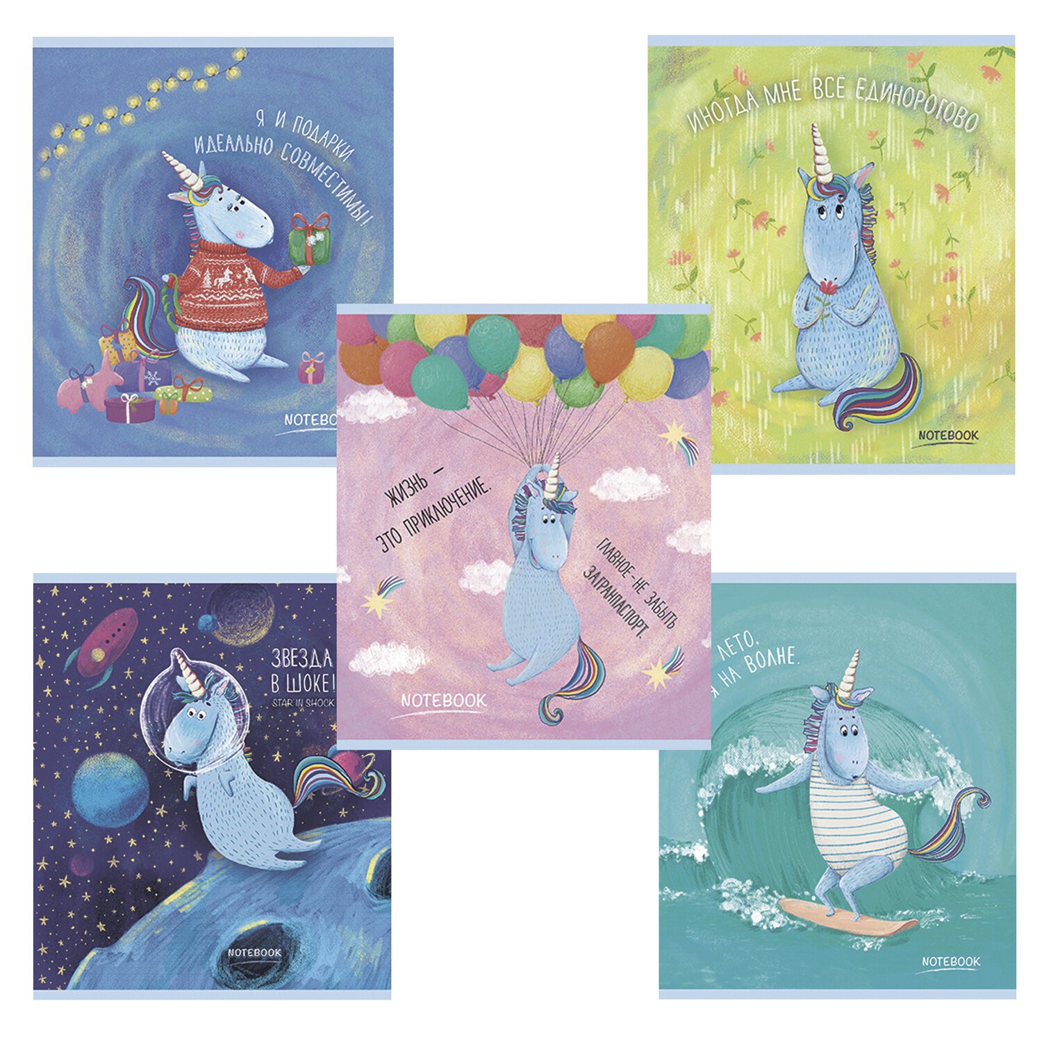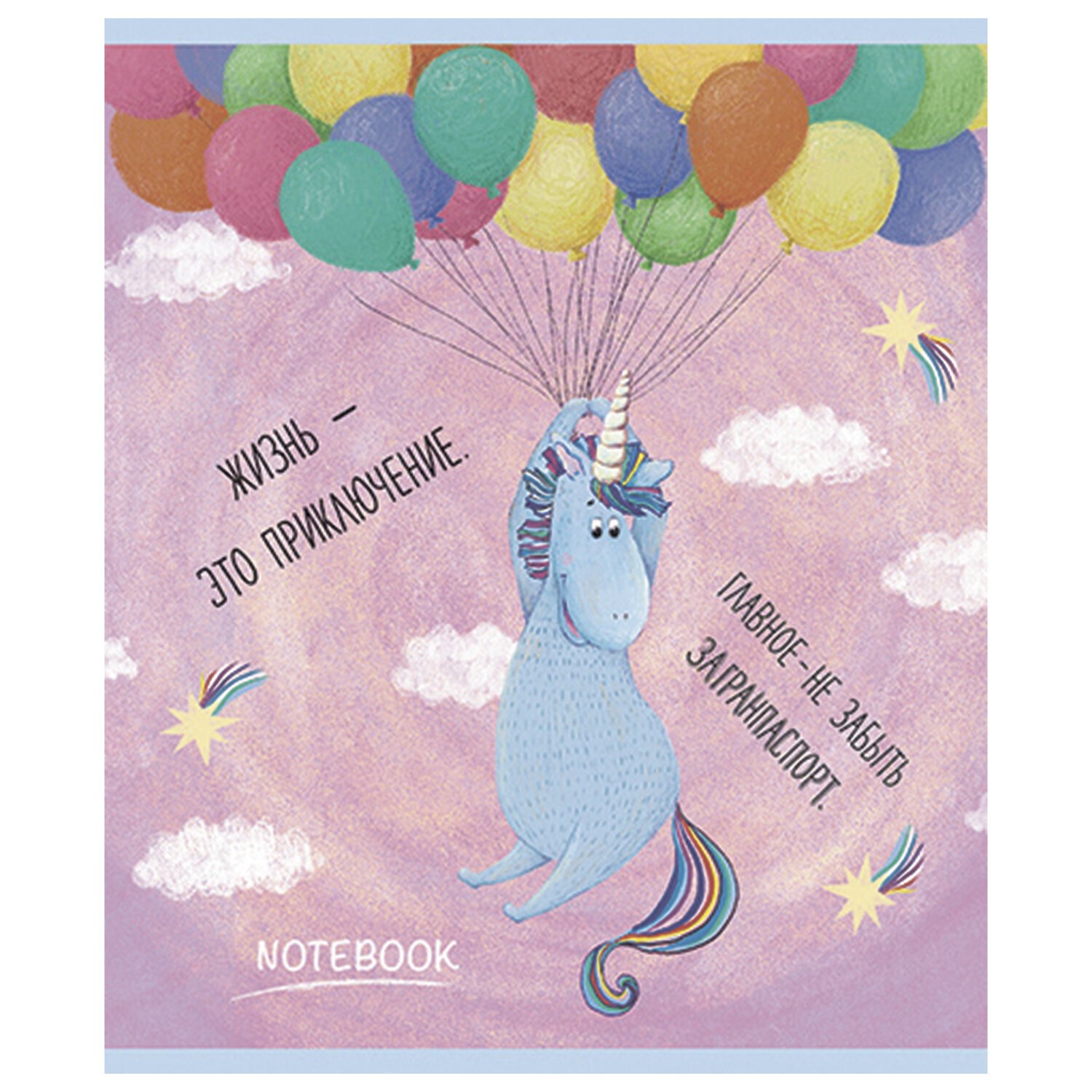 Тетрадь А5, 48 л., ПЗБМ, скоба, клетка, матовая ламинация, фольга, блестки, "Юникорнизация" (5 видов), 027934