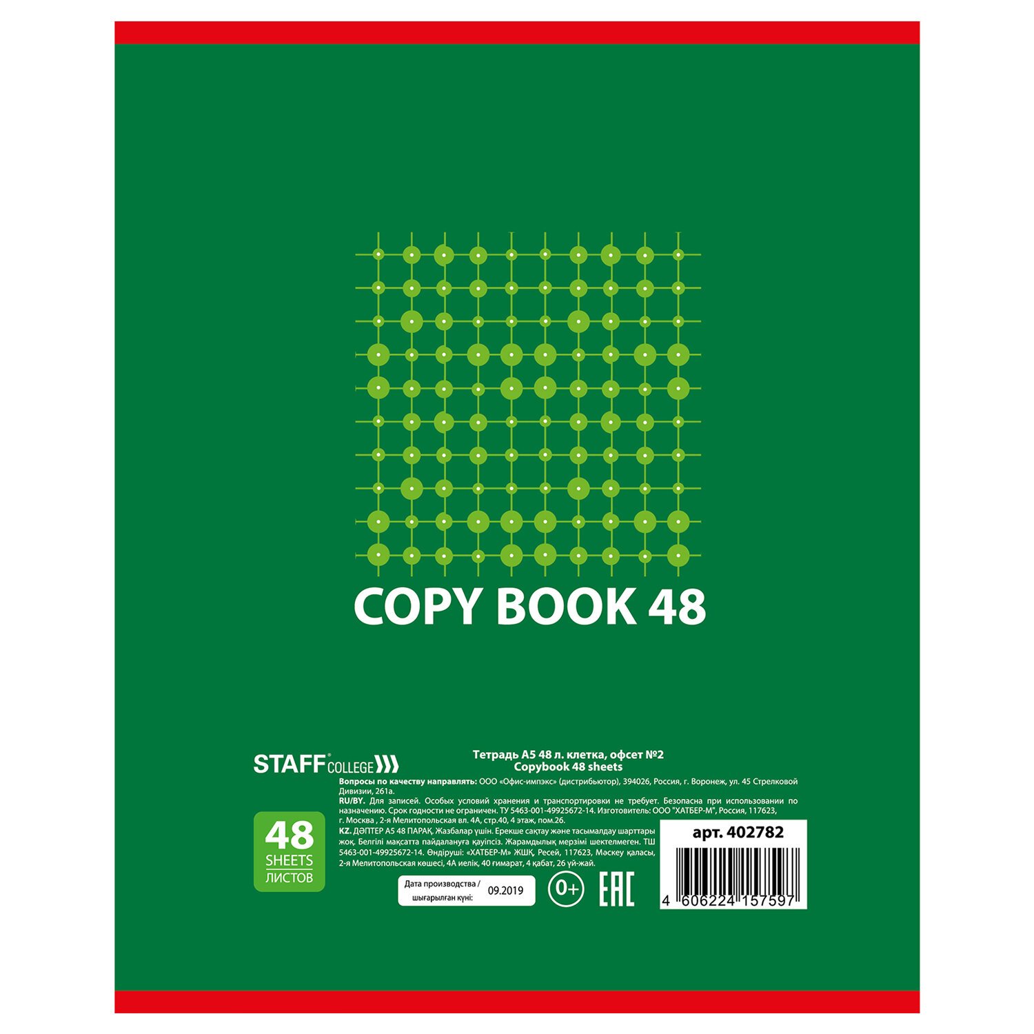 Тетрадь А5, 48 л., STAFF, скоба, клетка, офсет №2 ЭКОНОМ, обложка картон, ОДНОТОННАЯ, 402322