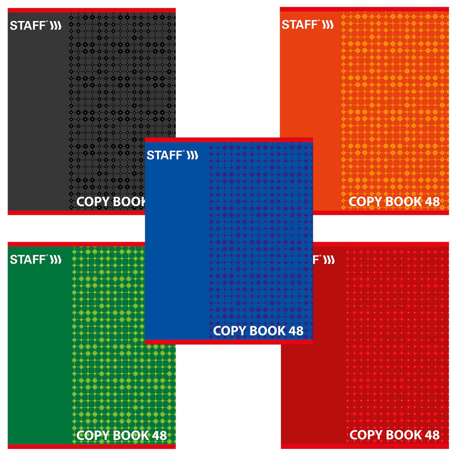 Тетрадь А5, 48 л., STAFF, скоба, клетка, офсет №2 ЭКОНОМ, обложка картон, "ОДИН ЦВЕТ" (точки), 402782