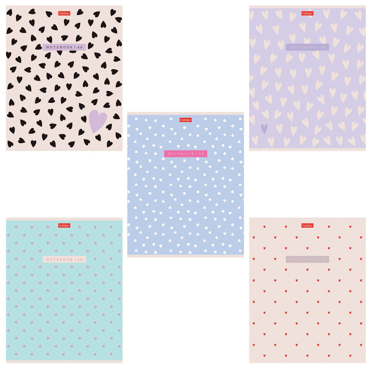 Тетрадь А5 48 л. HATBER скоба, клетка, ламинация, "I Like Black" (5 видов в спайке), 48Т5лВ1