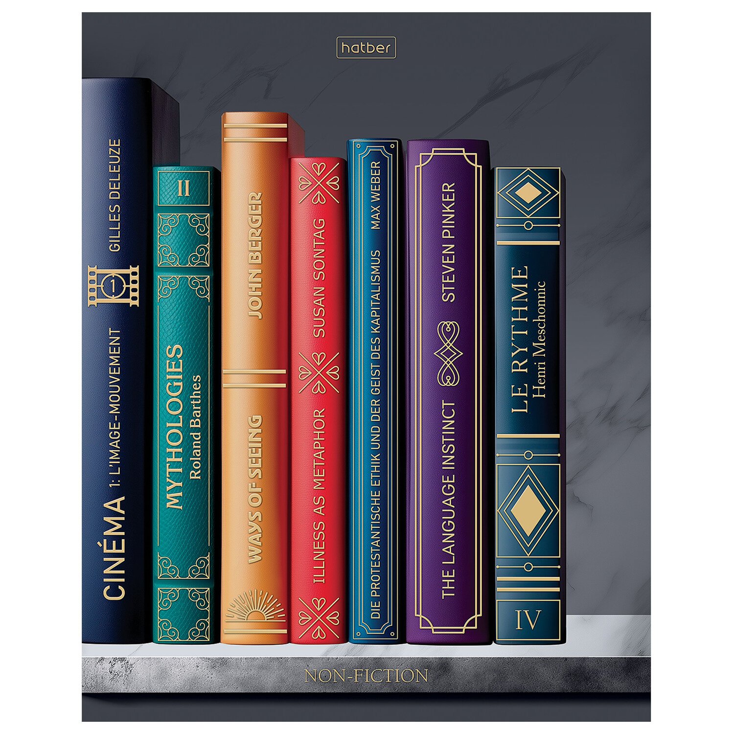 Тетрадь А5 48л. HATBER скоба, клетка, Soft-touch ламинац, 3D фольга, Золотые страницы, 48Т5лофВ1