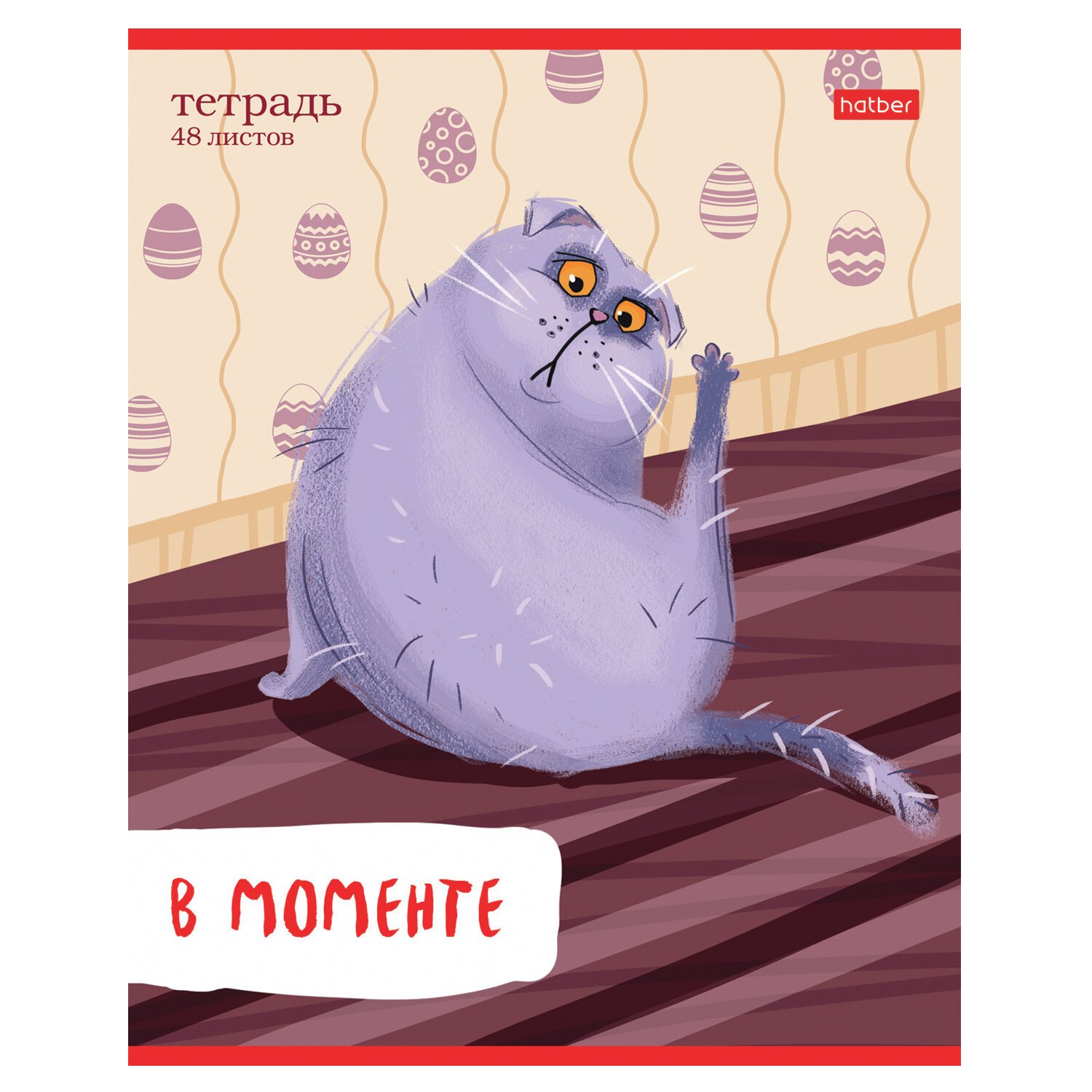 Тетрадь А5 48л. HATBER скоба, линия, обложка картон, Кот-обормот (микс в спайке), 080206, 48Т5В2