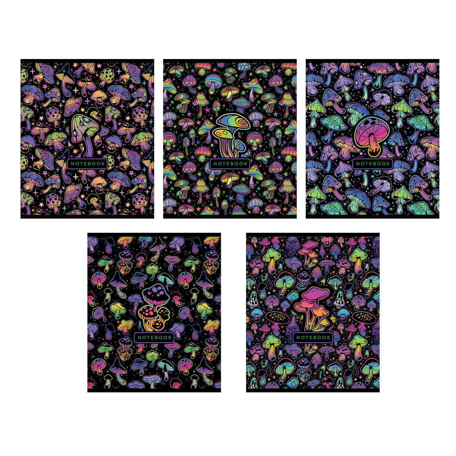 Тетрадь А5 48л. ПЗБМ скоба, клетка, фольга, TWIN лак, Грибочки (микс в спайке), 23768