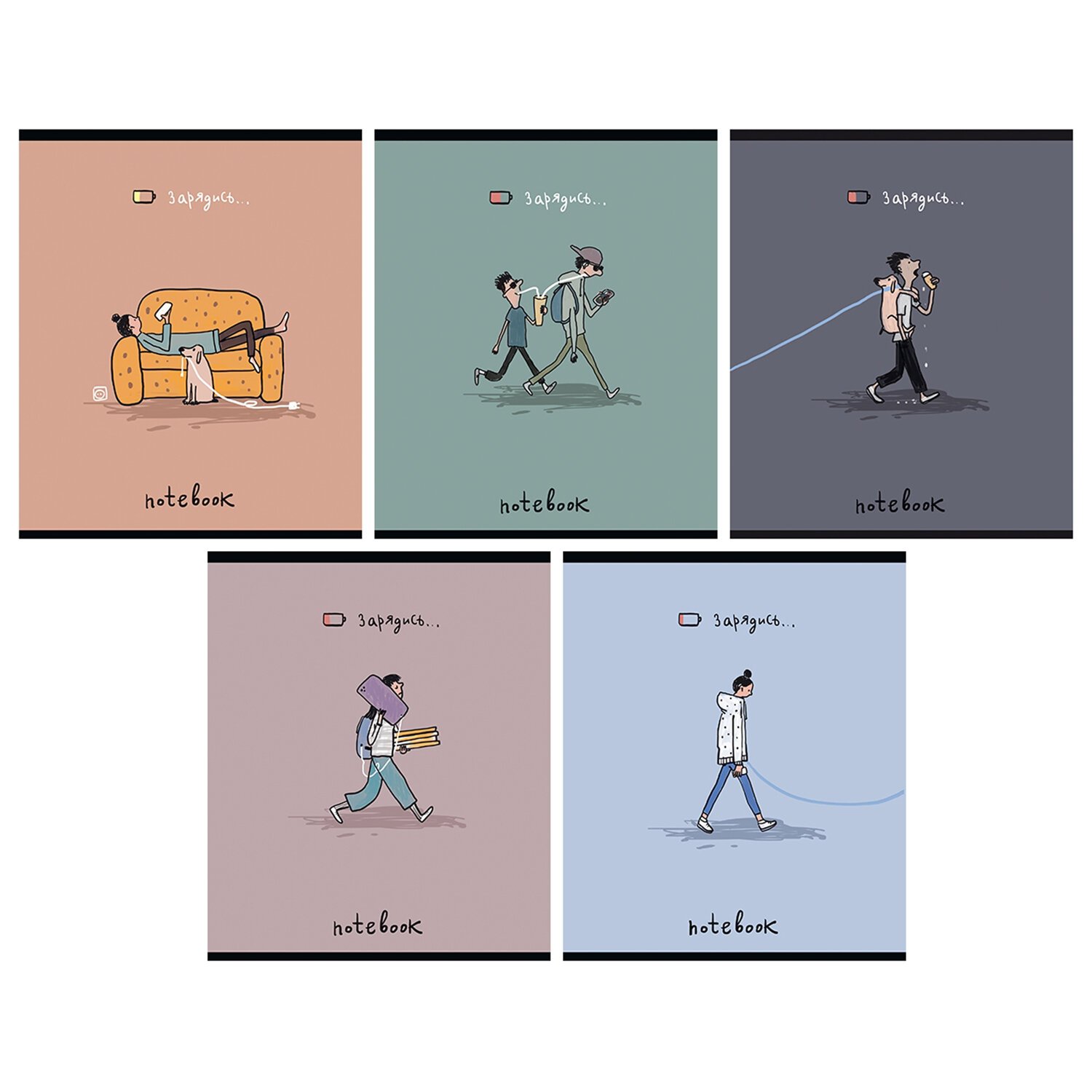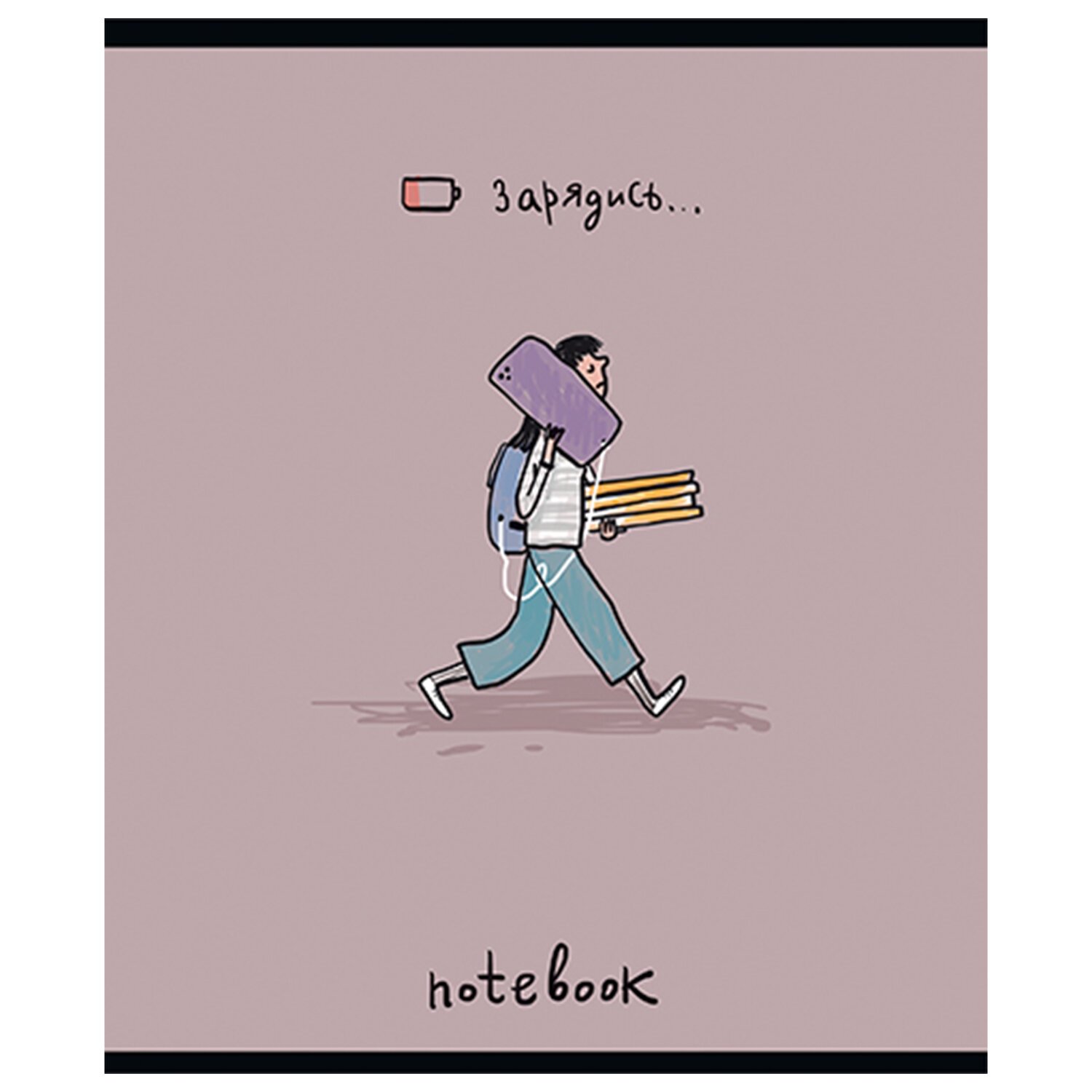 Тетрадь А5 48л. ПЗБМ скоба, клетка, матовая ламинация, брайль, Зарядись (микс в спайк, 22587