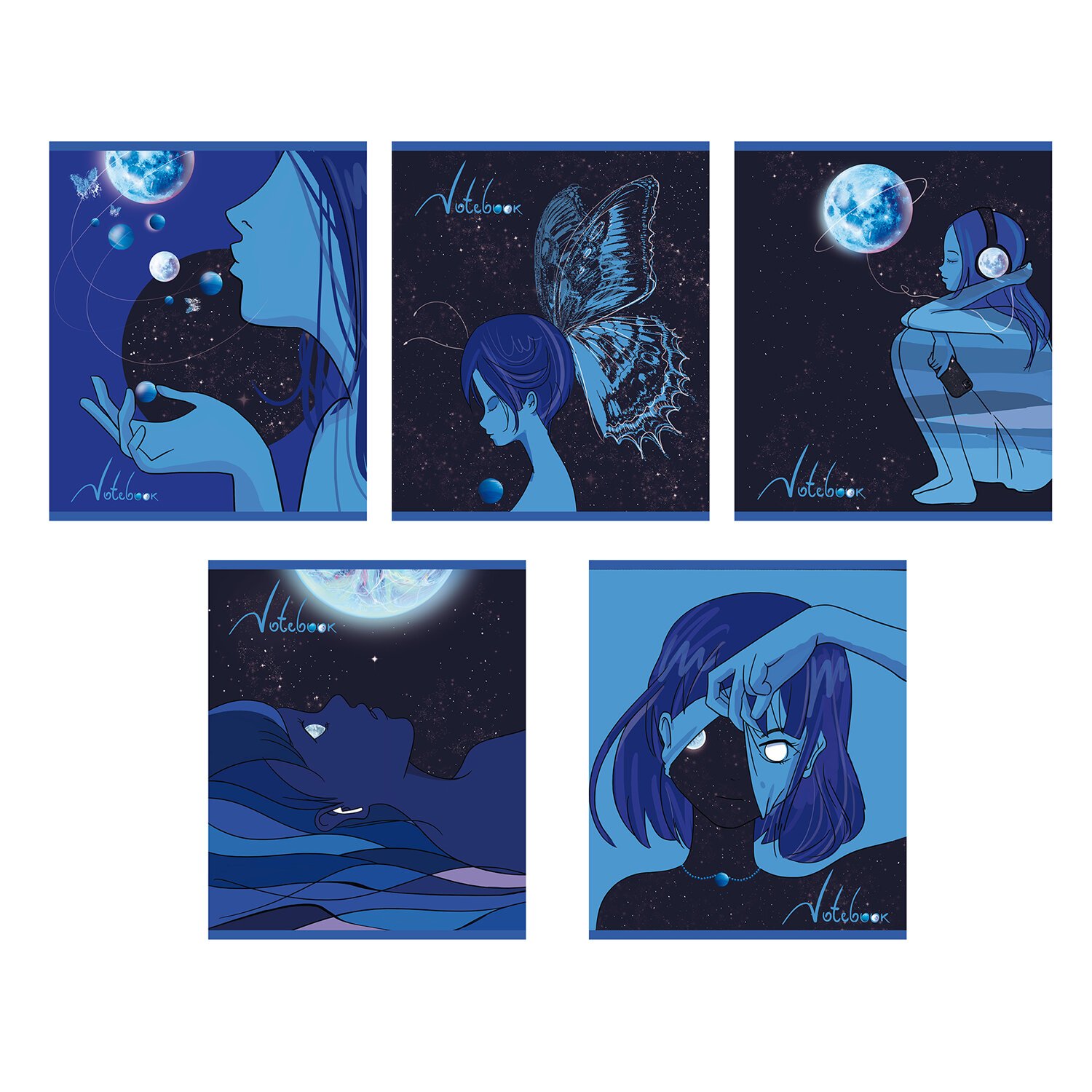 Тетрадь А5 48л. ПЗБМ скоба, клетка, Soft Touch, глиттер, Космо (микс в спайке), 23829
