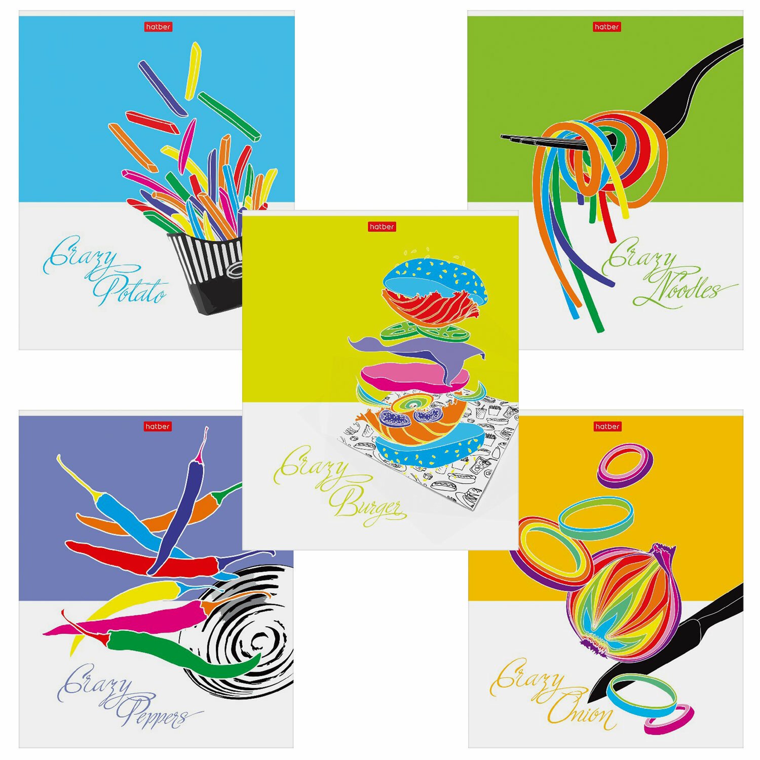 Тетрадь А5, 80 л., HATBER скоба, клетка, обложка картон, "Crazy food" (5 видов), 80Т5В1