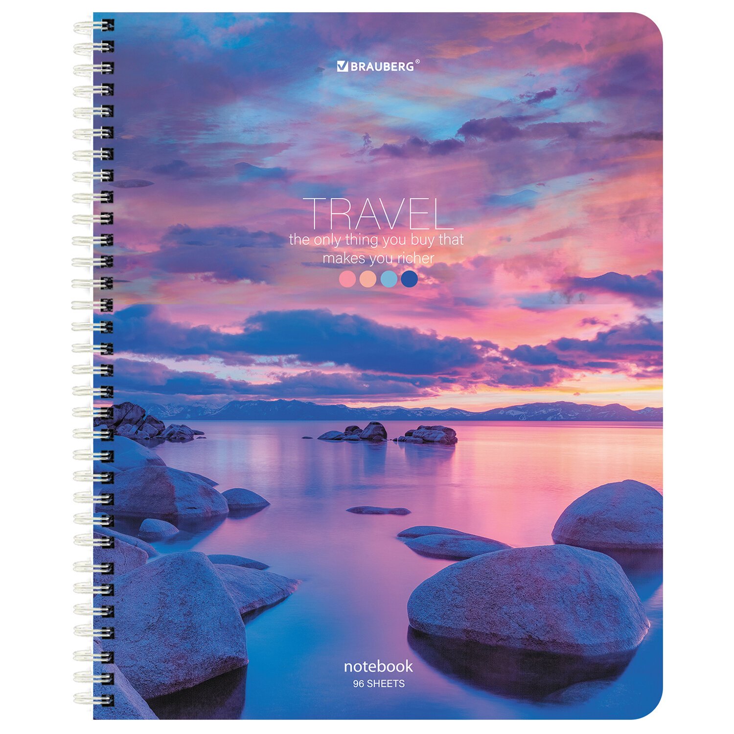 Тетрадь А5 96 л. BRAUBERG, гребень, клетка, обложка картон, "Travel" (микс в спайке), 404426