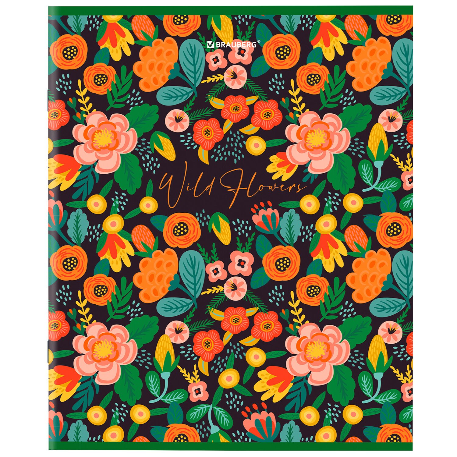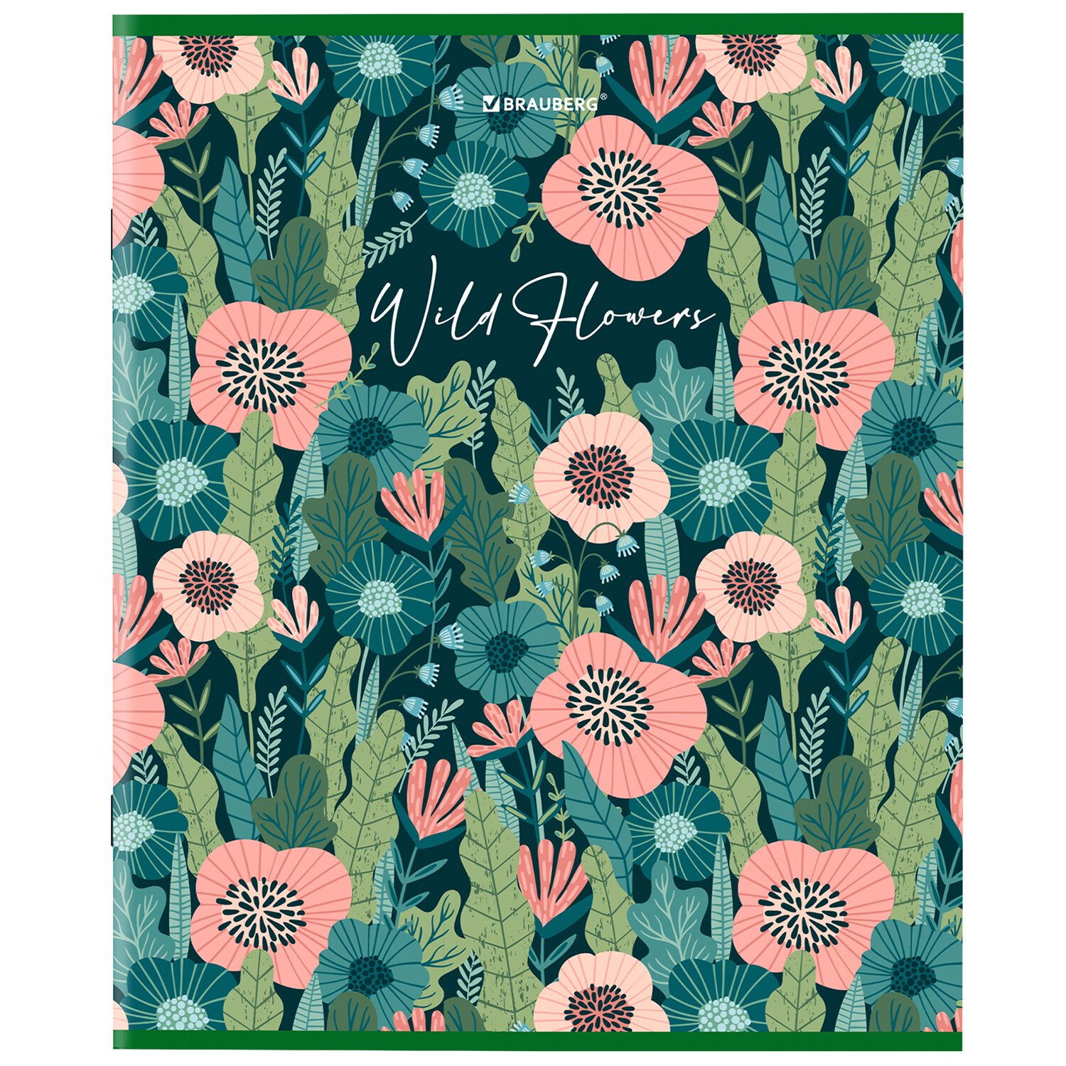 Тетрадь А5, 96 л., BRAUBERG, скоба, клетка, глянцевая ламинация, "Wild Flowers", 404429