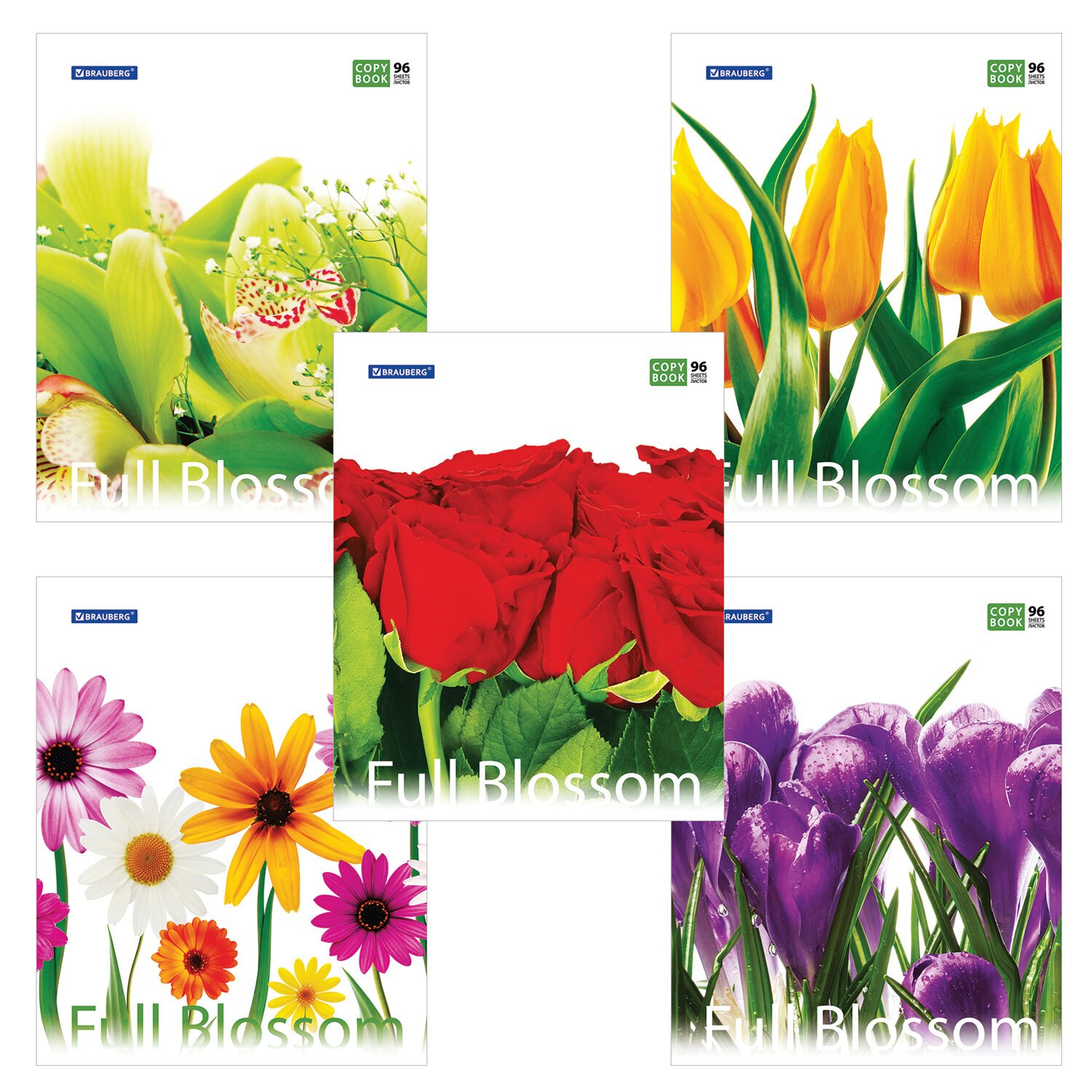 Тетрадь А5, 96 л., BRAUBERG, скоба, клетка, обложка картон, ЦВЕТЫ, 401845