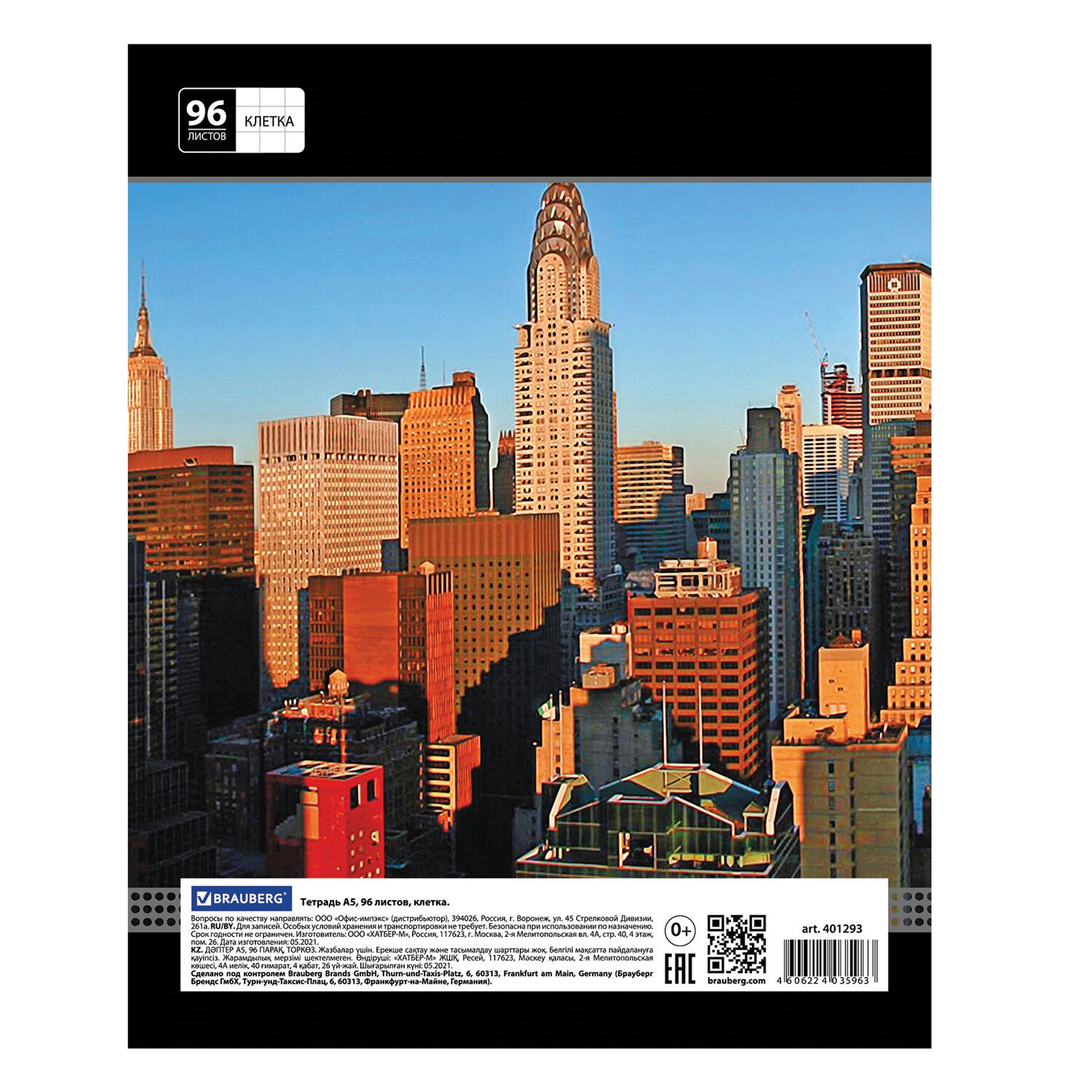 Тетрадь А5, 96 л., BRAUBERG, скоба, клетка, обложка картон, ГОРОДА, 401293