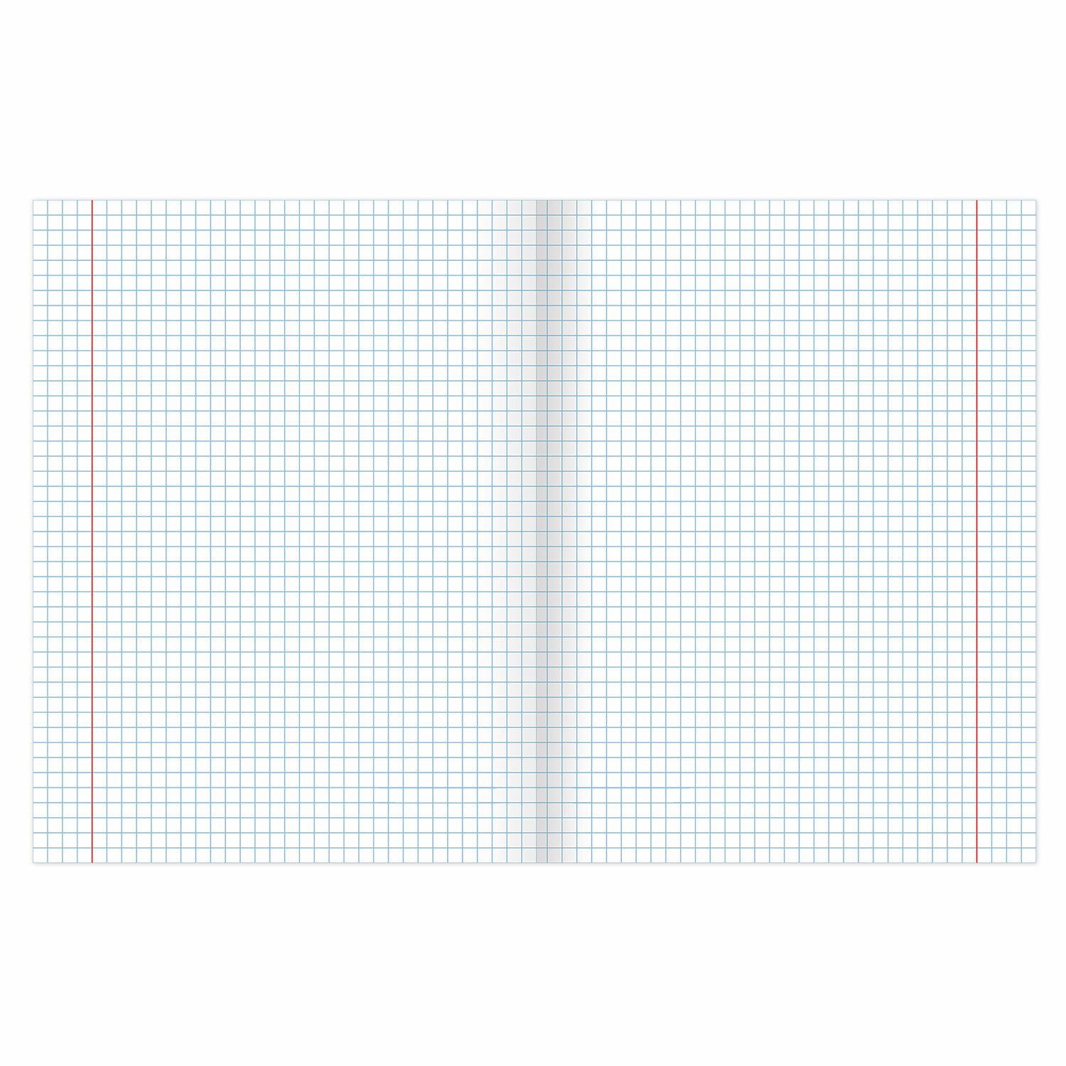 Внутренний блок содержит 96 листов офсетной бумаги плотностью 65 г/м2. Обложка изготовлена из мелованного картона. Линовка - клетка с полями. Скрепка надежно скрепляет листы между собой. Белизна - 92%. Формат А5.