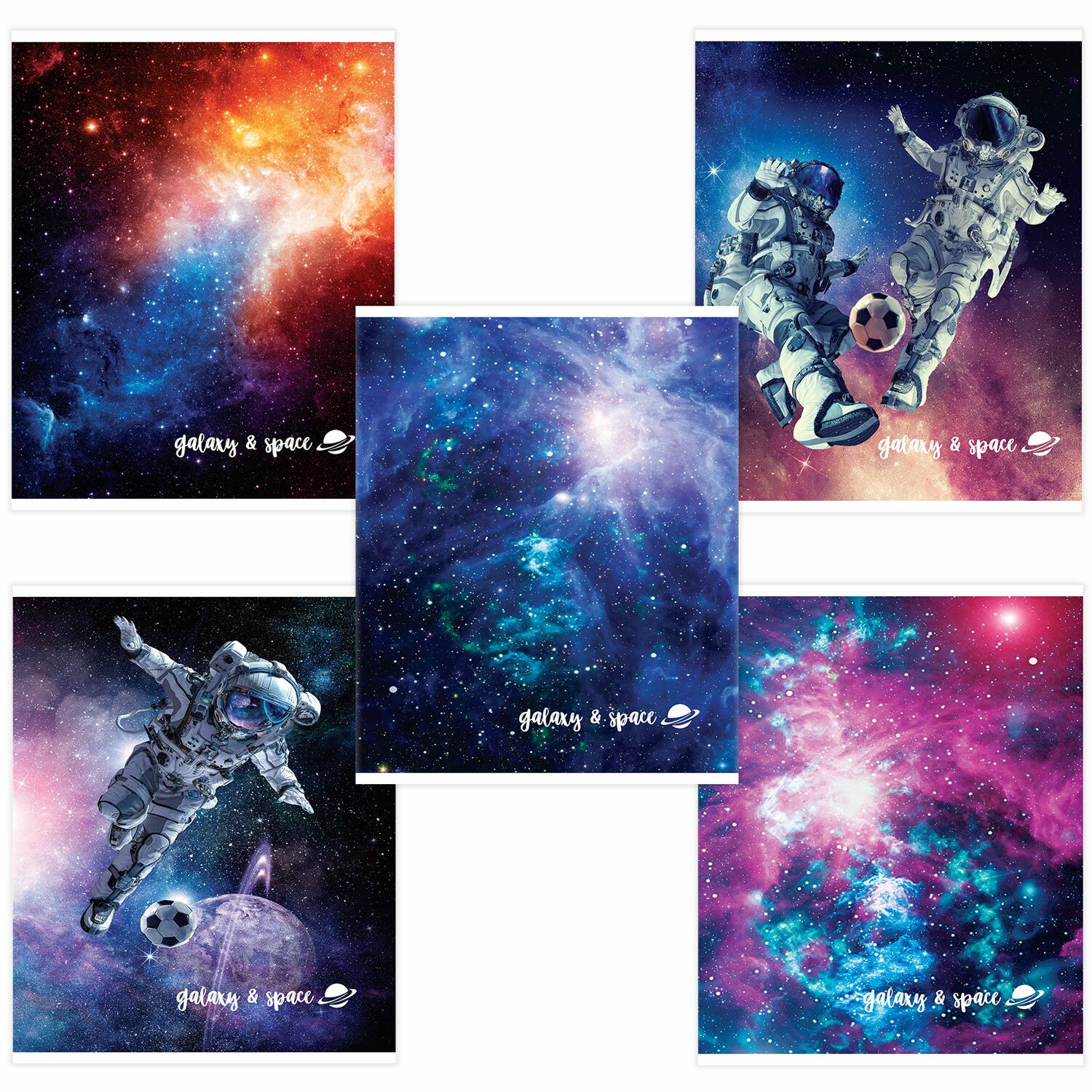 Тетрадь А5, 96 л., BRAUBERG, скоба, клетка, обложка картон, КОСМОС, 403059