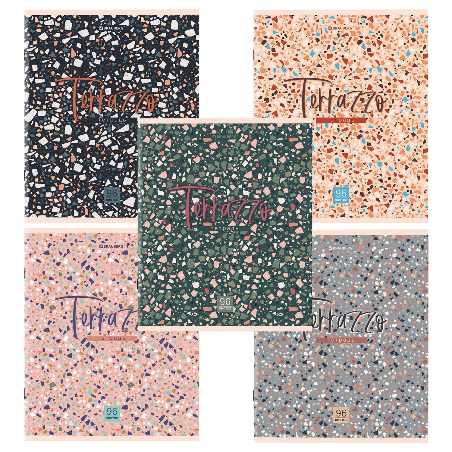 Тетрадь А5 96 л. BRAUBERG скоба, клетка, обложка картон, "Terrazzo" (микс в спайке), 404437