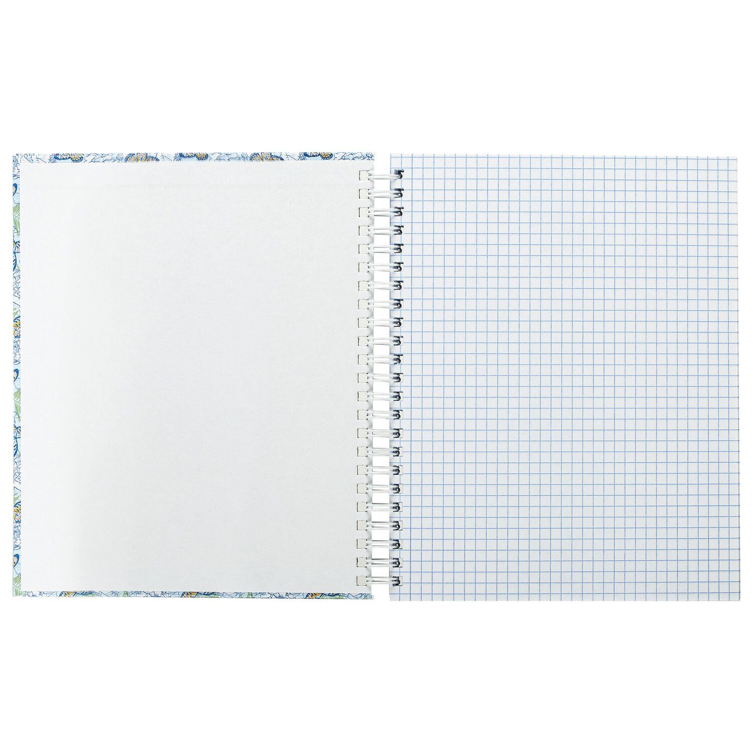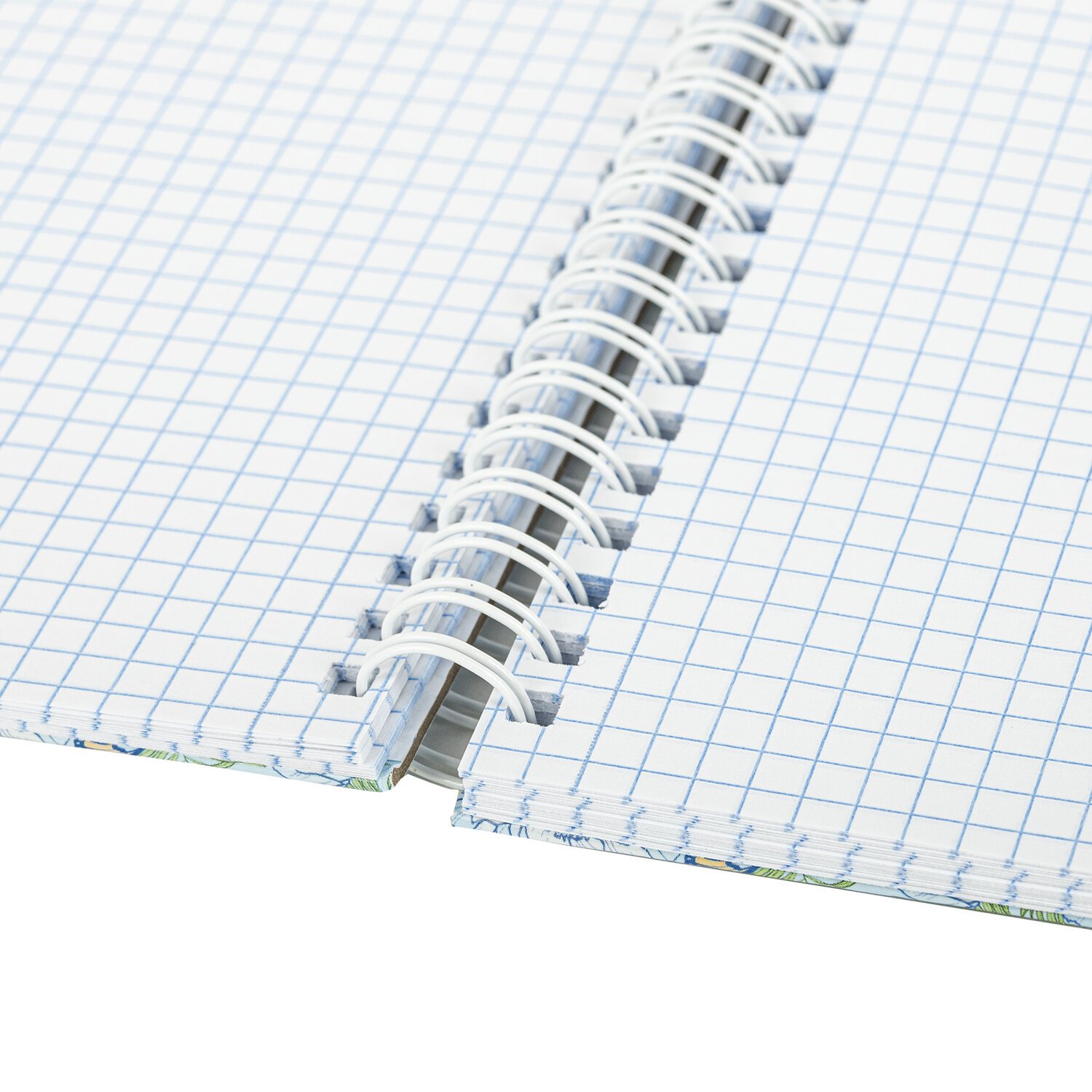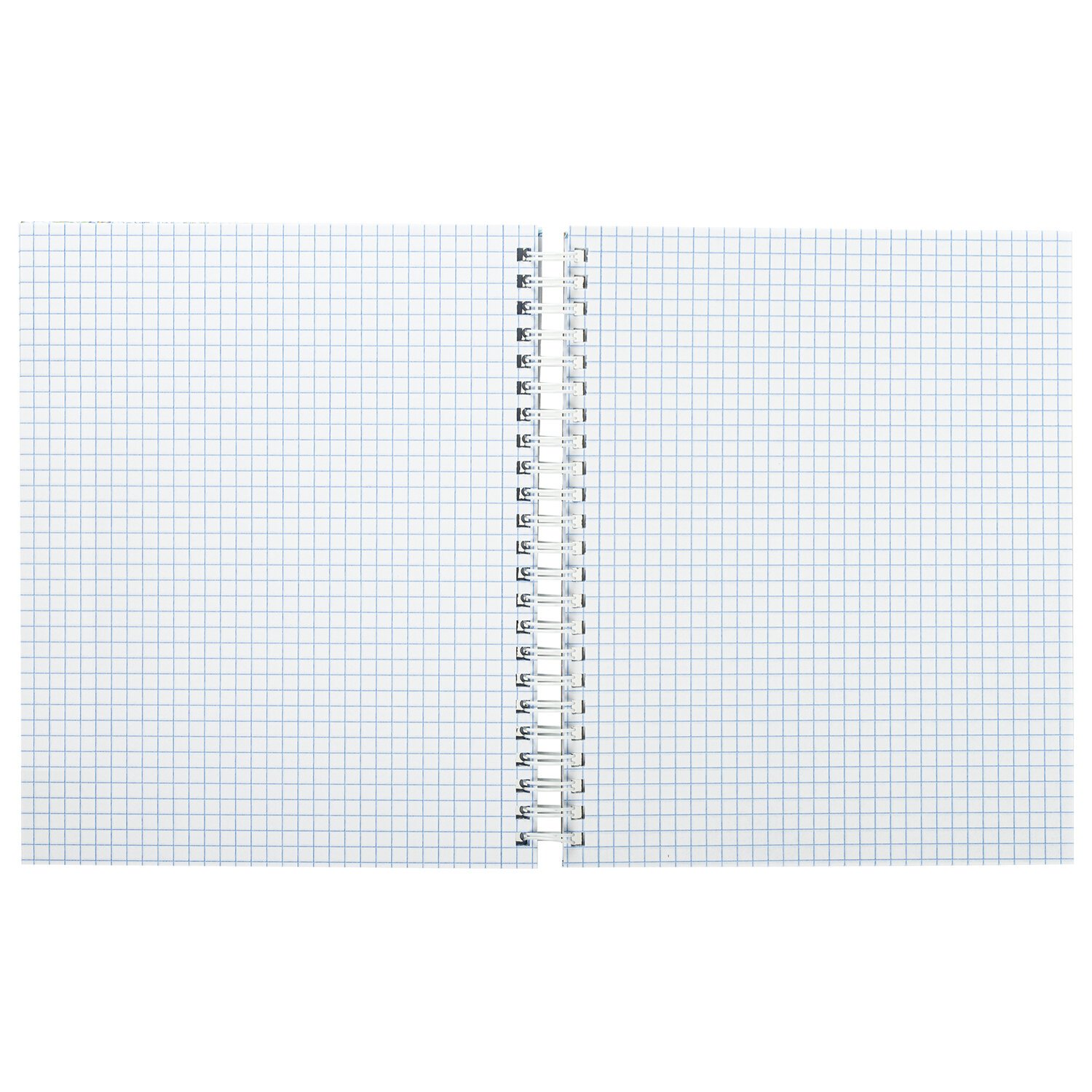 Тетрадь А5 формата с твердой ламинированной обложкой. Внутренний блок состоит из 96 листов офсетной бумаги плотностью 60 г/м2. Линовка - клетка. Скрепление "гребень" позволяет раскрывать тетрадь на 360 градусов.