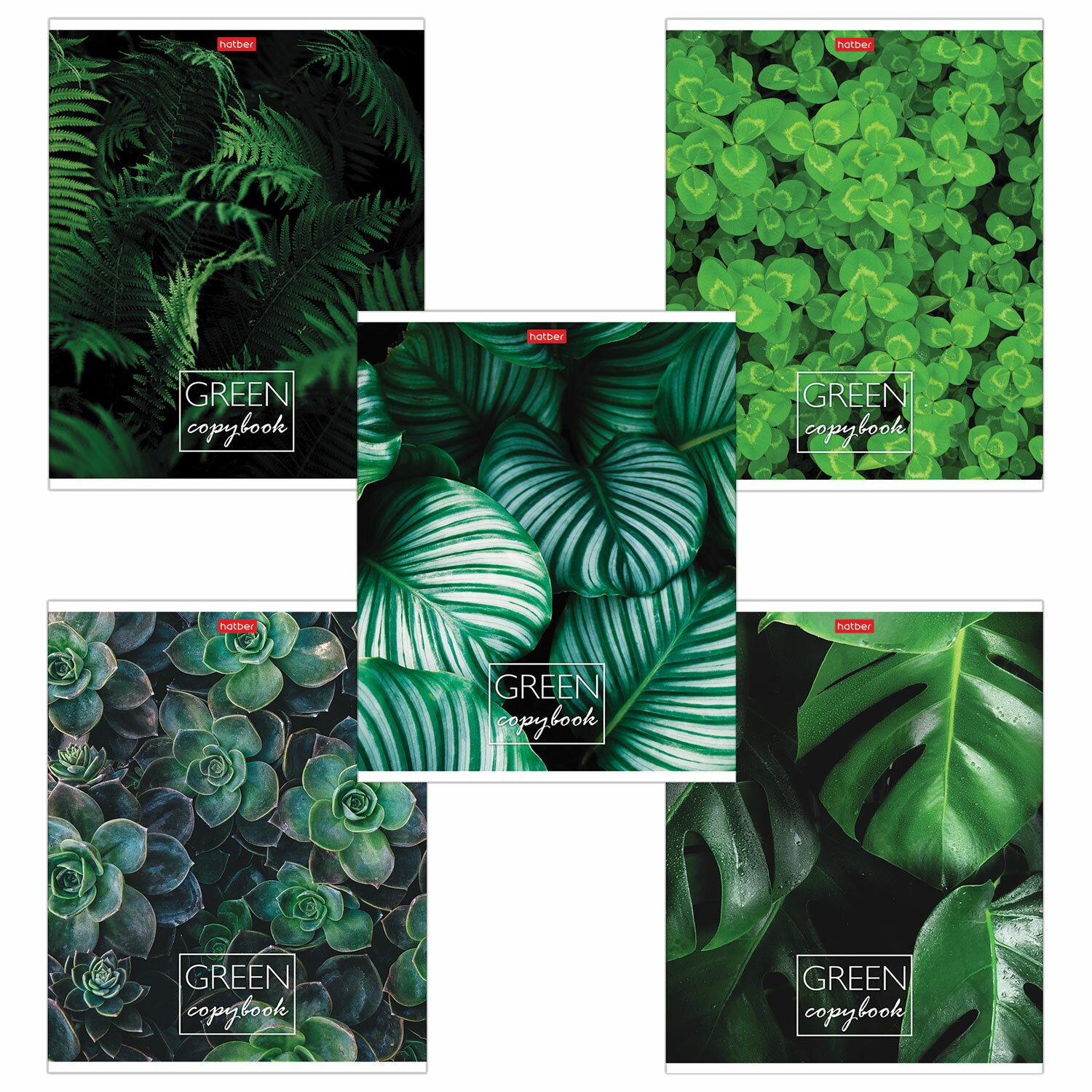 Тетрадь А5 96л. HATBER скоба, клетка, обложка картон, "MOREgreen" (5 видов), 96Т5В1
