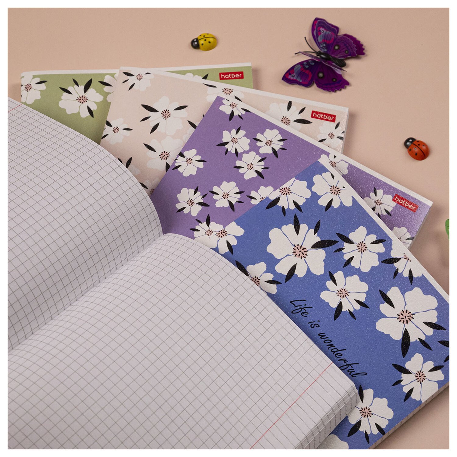 Тетрадь А5 96л. HATBER скоба, клетка, тиснение, Музыка цветов (микс в спайке), 093165, 96Т5тВ1