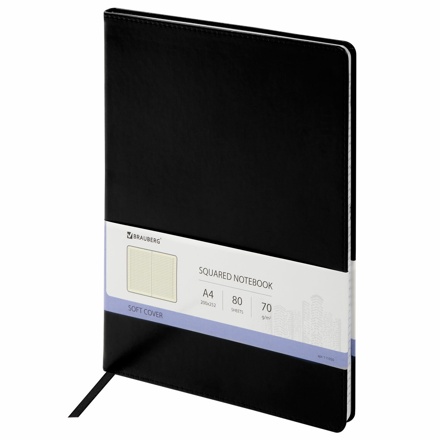 Тетрадь БОЛЬШОЙ ФОРМАТ (200x252 мм) В5, BRAUBERG "Metropolis Extra", под кожу, клетка, 80 л., черный, 111050