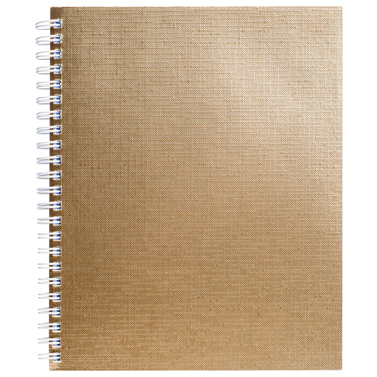 Тетрадь А5 формата 96 листов. Обложка: бумвинил METALLIC Золото. Внутренний блок: офсет 60 гр., клетка. Скрепление: гребень.