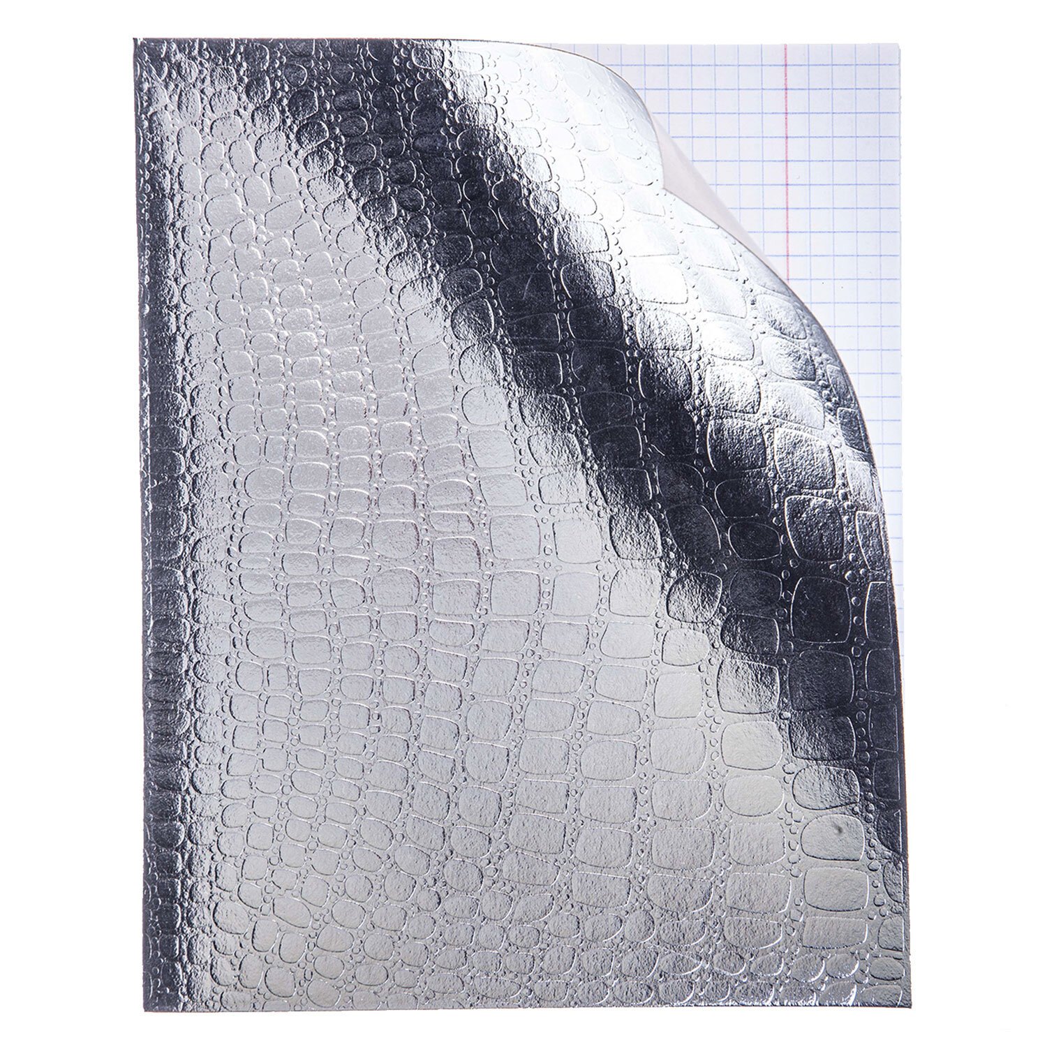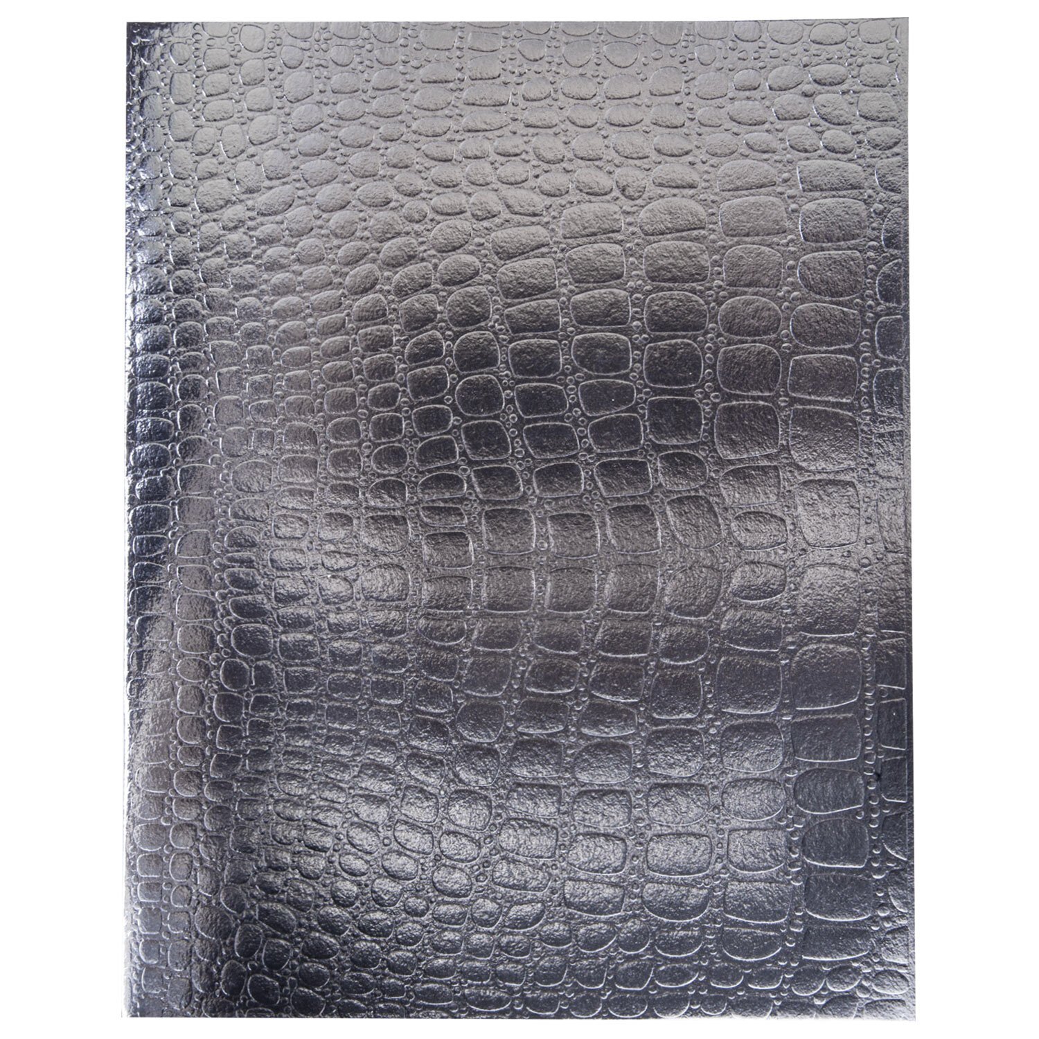 Тетрадь А5 формата 96 листов. Обложка- бумвинил METALLIC, дополненный спецэффектами в виде тиснения CROCO. Внутренний блок- офсет 60 гр., клетка. Скрепление- скоба.