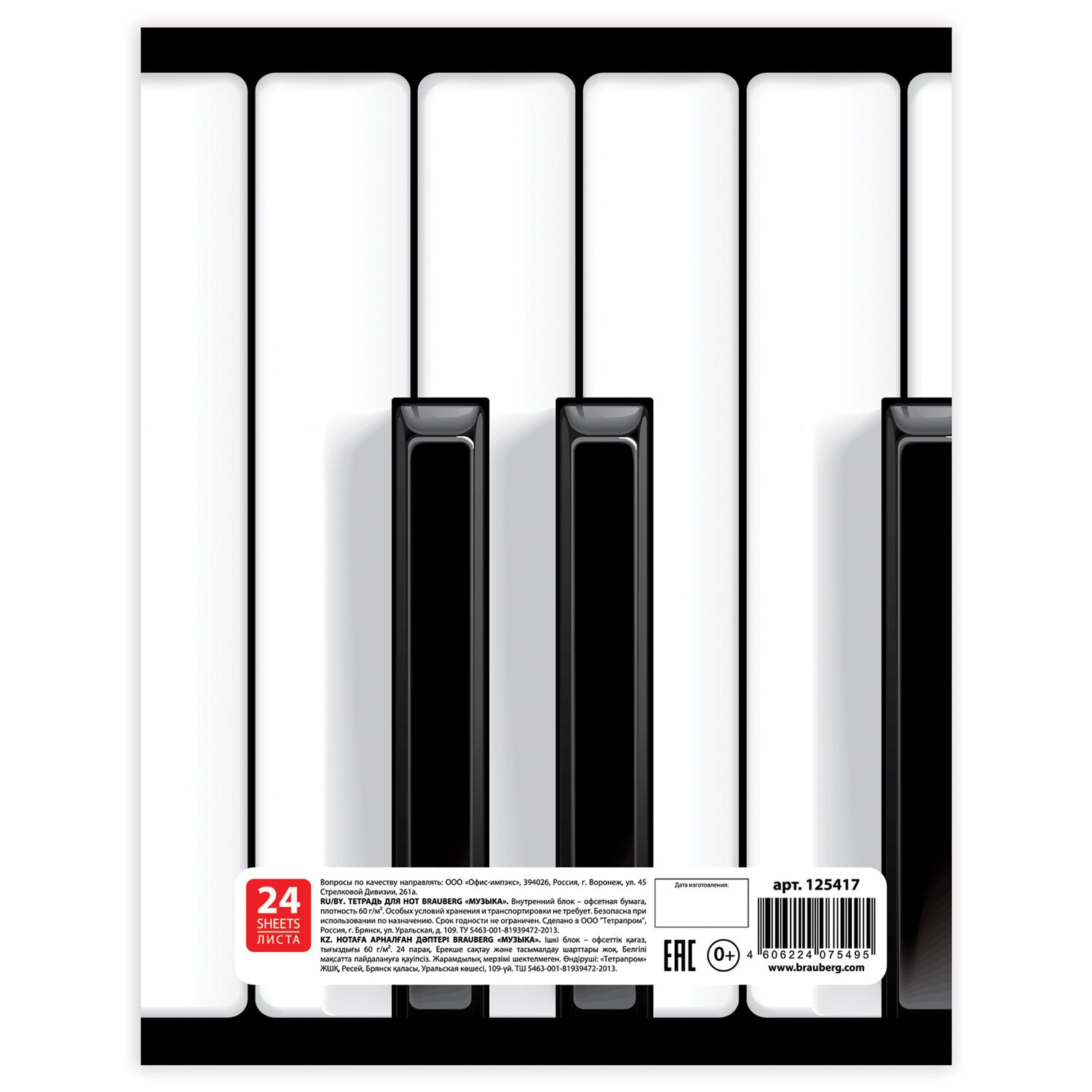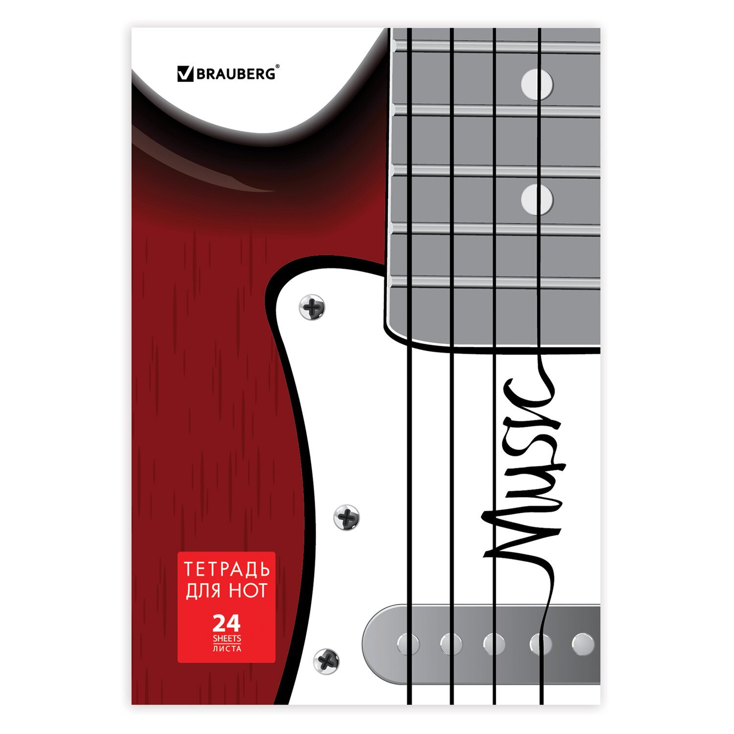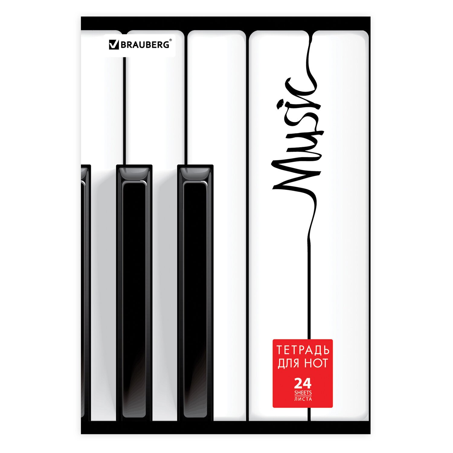 Тетрадь для нот А4, 24 л., BRAUBERG, обложка мелованный картон, вертикальная, на скобе, BRAUBERG, "Музыка", 125417