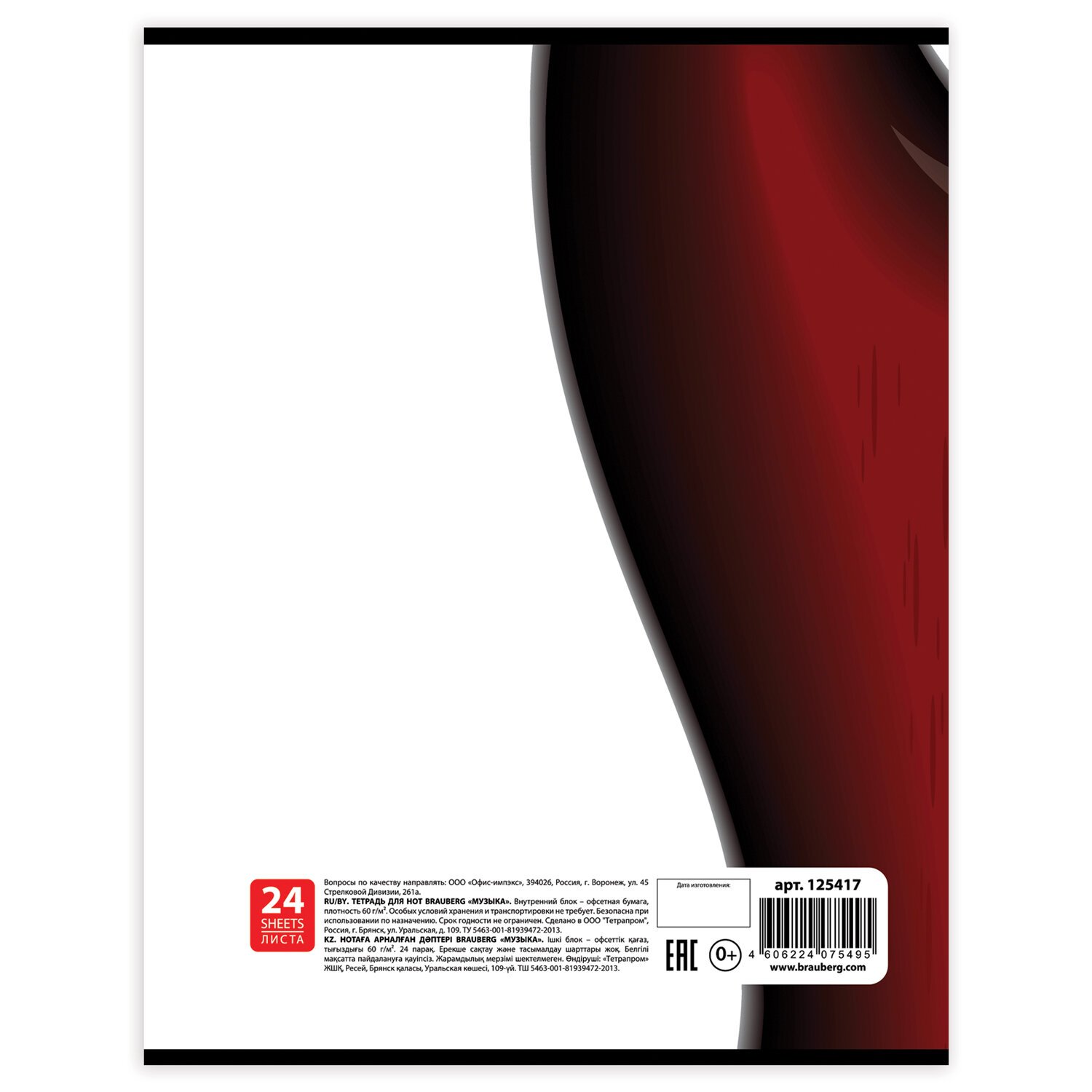 | Тип товара | тетрадь для нот |