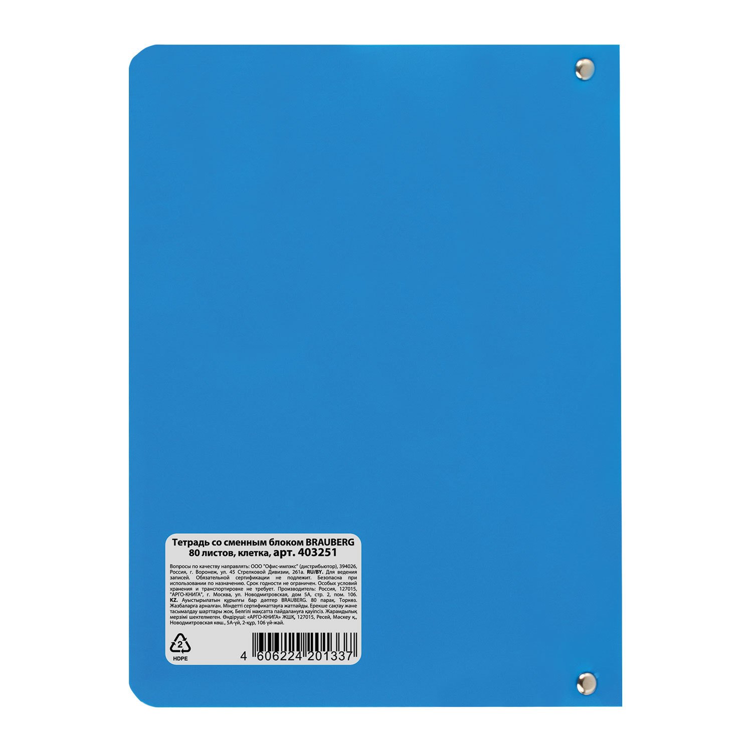 Тетрадь на кольцах А5 160х215 мм, 80 л., пластик, клетка, BRAUBERG, "Голубой", 403251