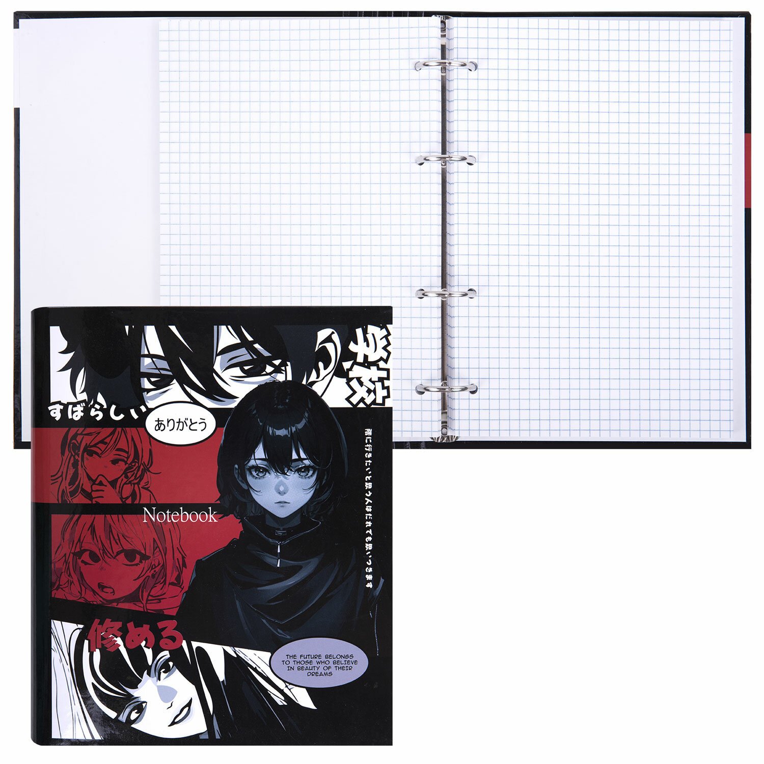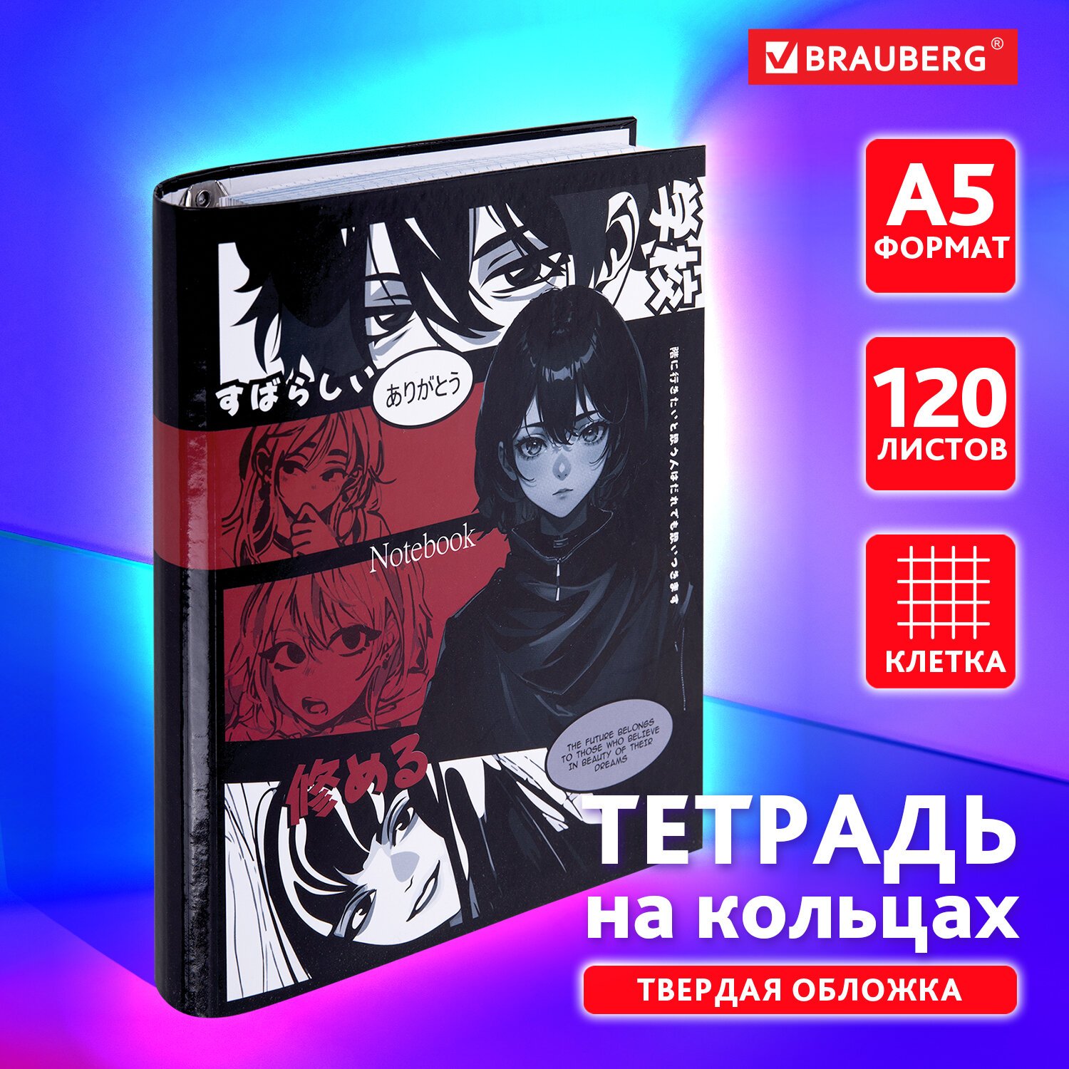 Тетрадь на кольцах А5 175х215 мм, 120 листов, твердый картон, клетка, BRAUBERG, "Anime Manga", 404715