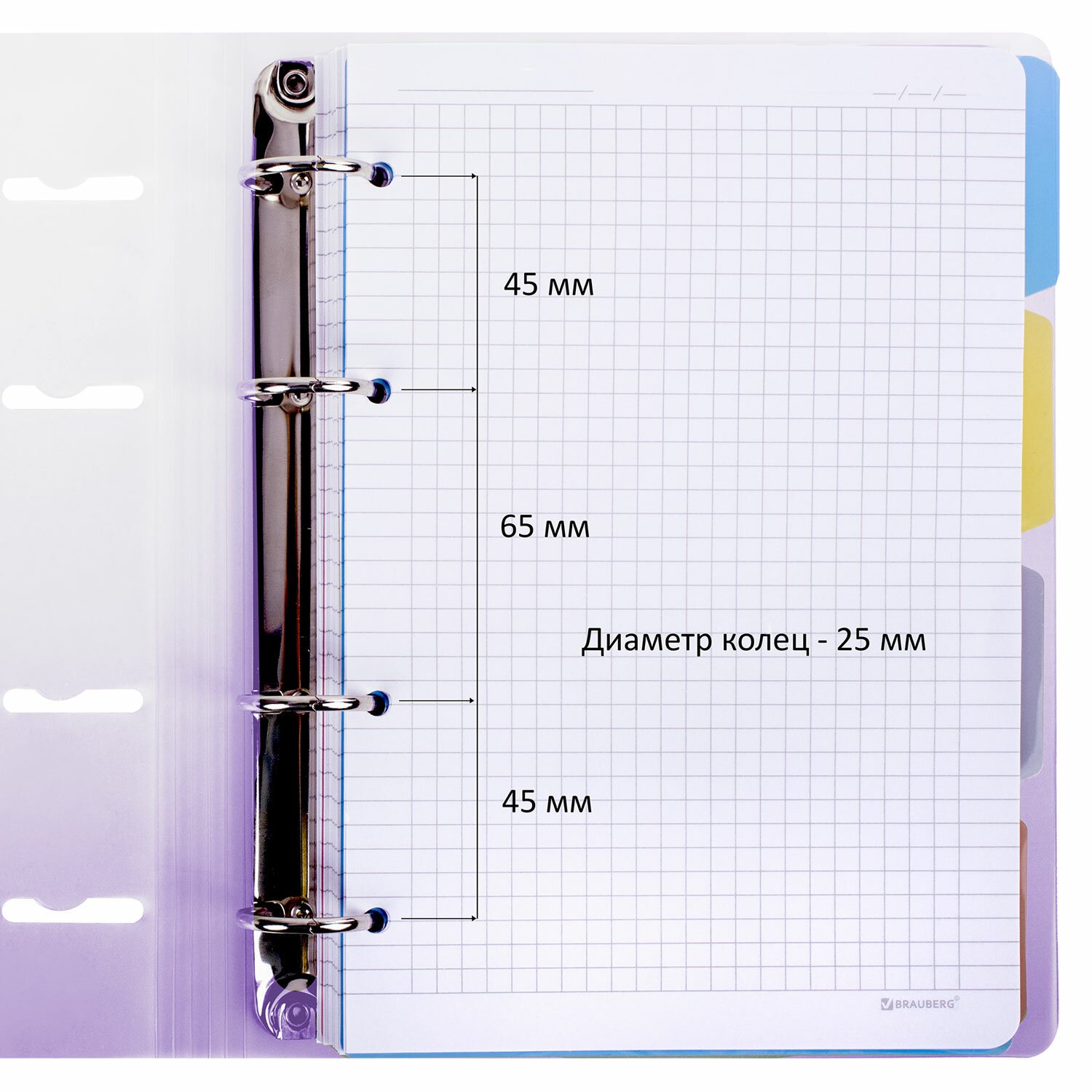 Тетрадь на кольцах А5 175х220 мм, 120 л., пластик, с разделителями, BRAUBERG, Фиолетовый, 404627