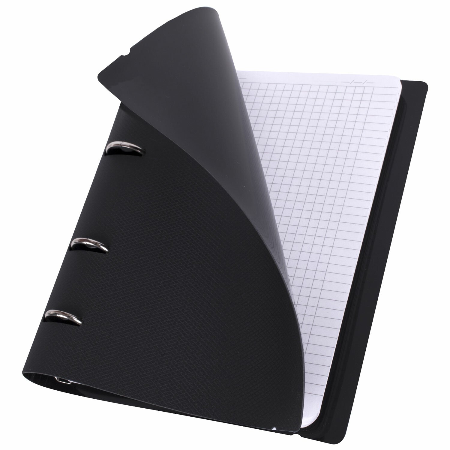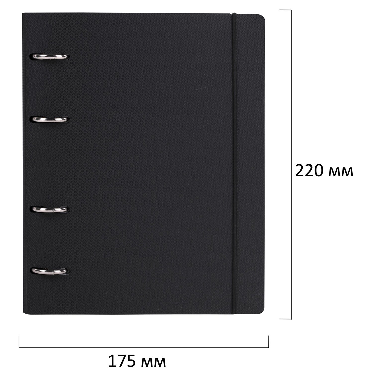 Тетрадь на кольцах А5 175х220 мм, 120 л., пластик, с резинкой, BRAUBERG, Черный, 404618