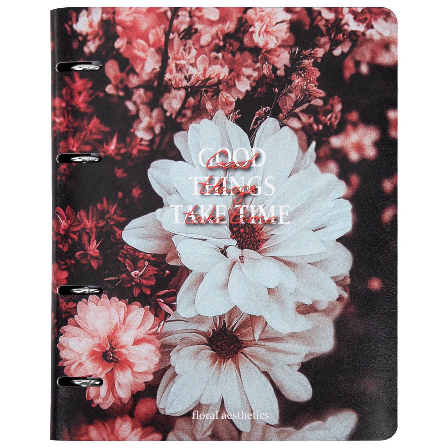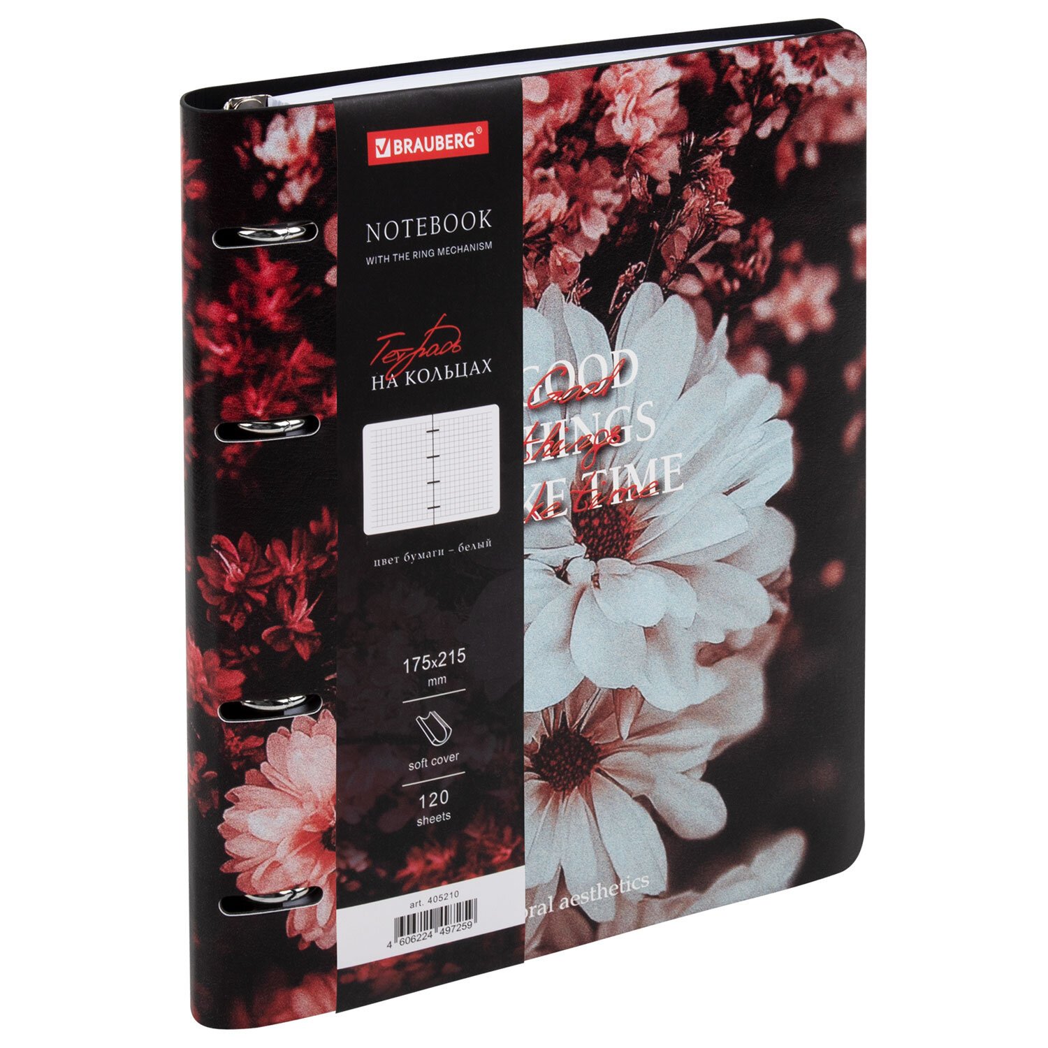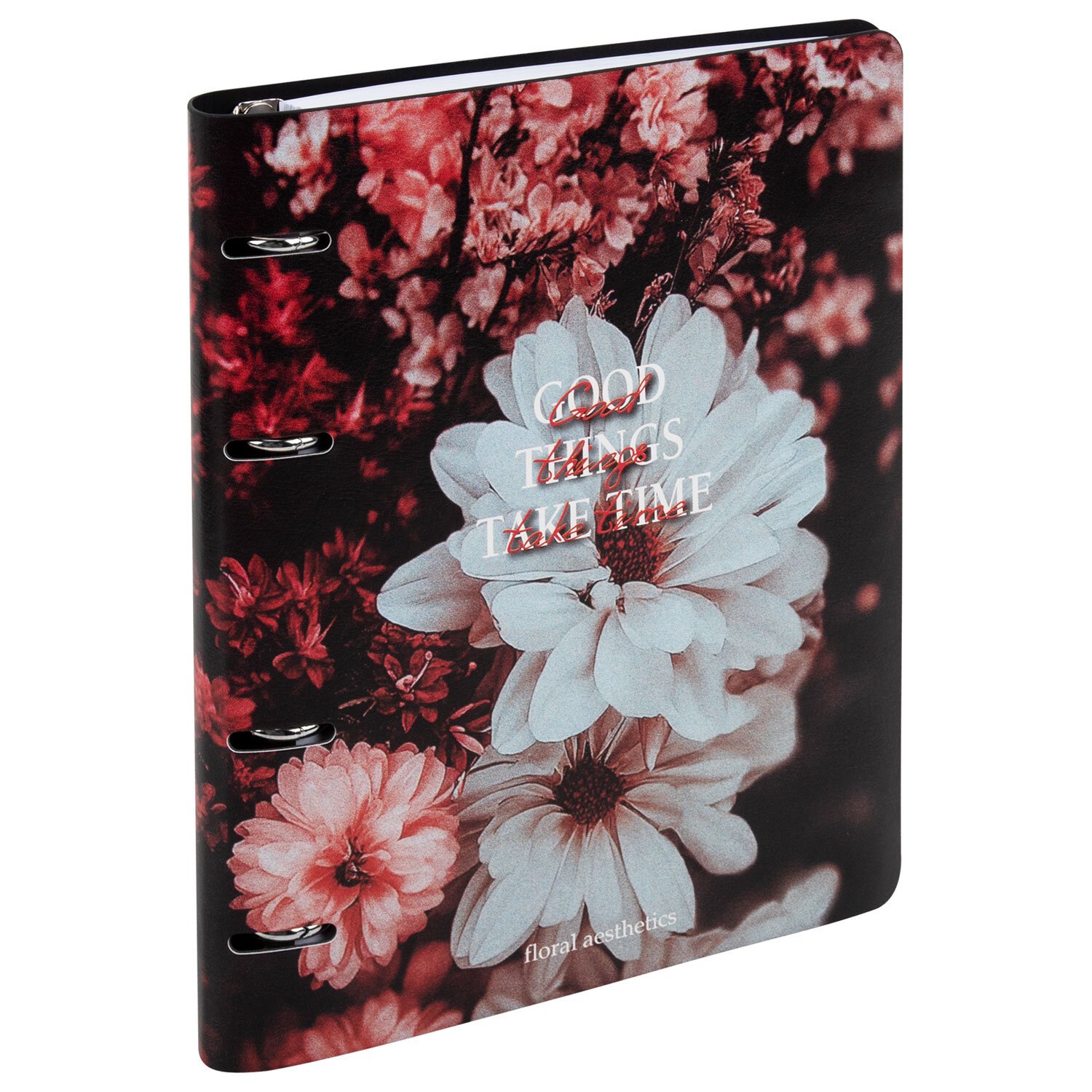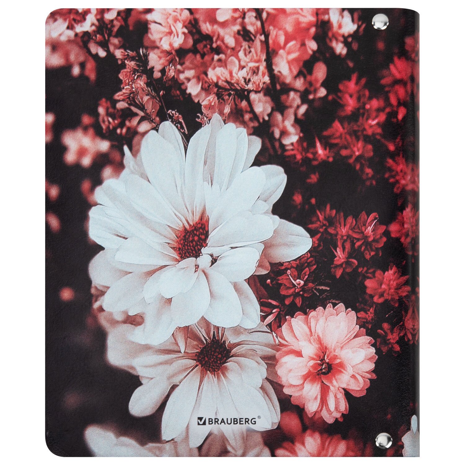 Тетрадь на кольцах А5 180х220, 120л, под кожу, BRAUBERG VISTA, Цветы, 405210