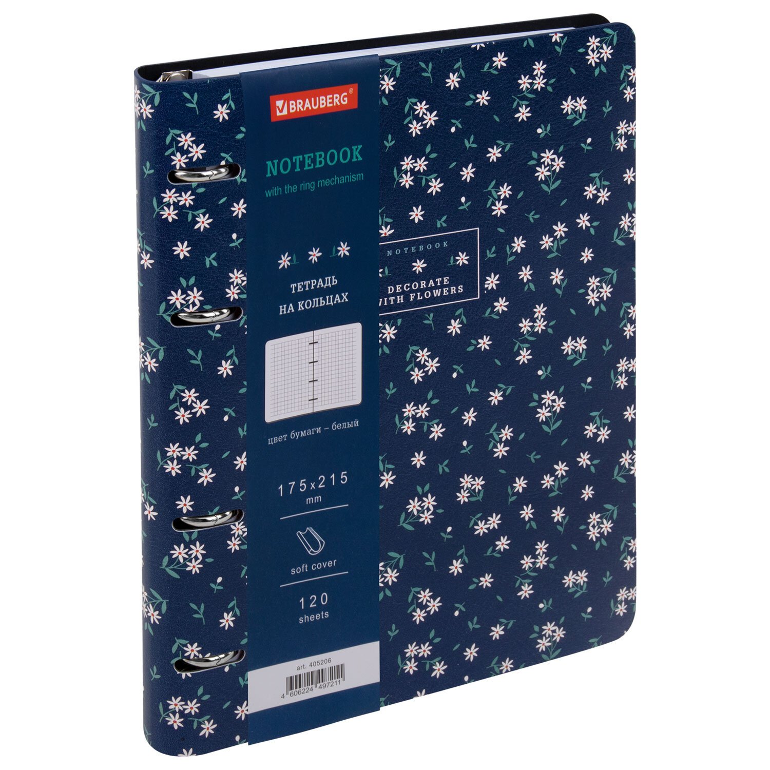 Тетрадь на кольцах А5 180х220, 120л, под кожу, BRAUBERG VISTA, Цветы, 405210