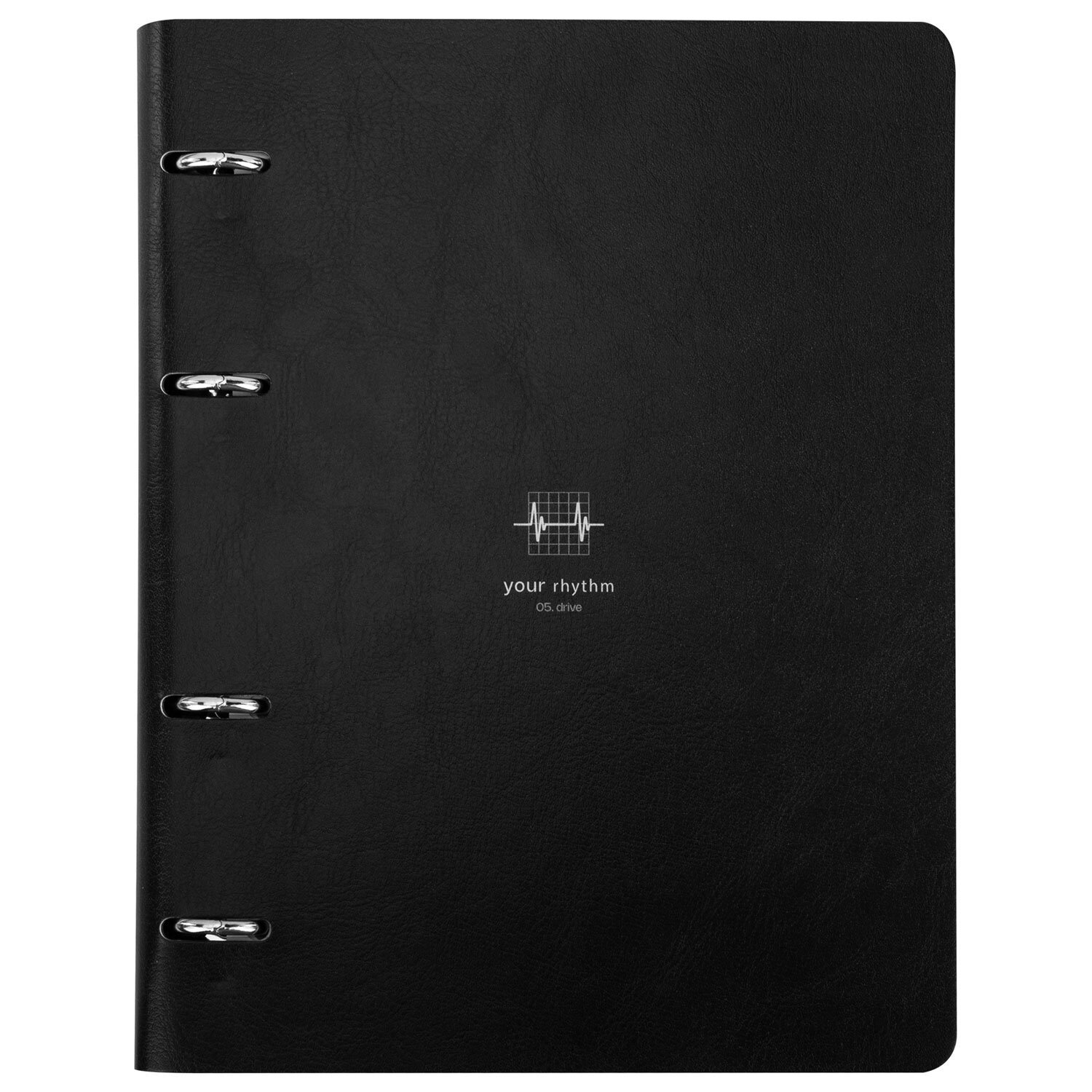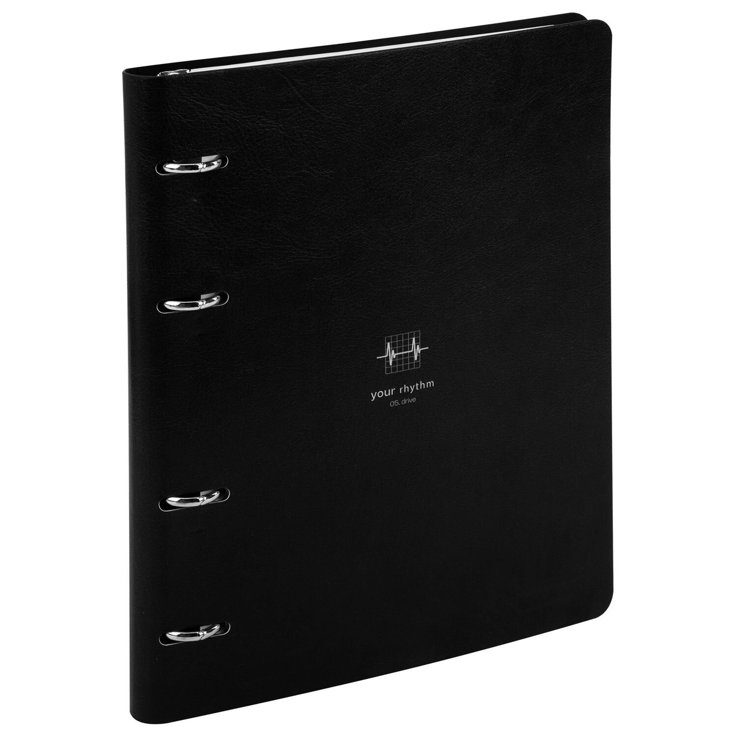 Тетрадь на кольцах А5 180х220, 120л, под кожу, BRAUBERG VISTA, Minimal черный, 405212