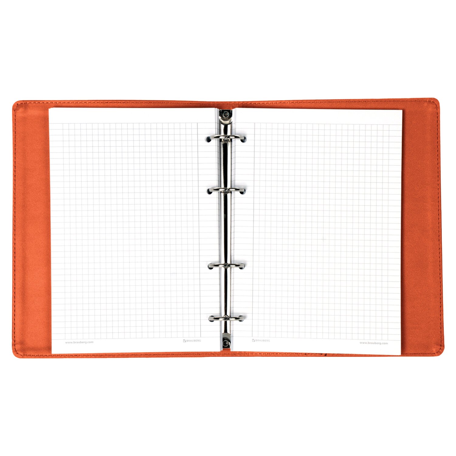 Тетрадь на кольцах А5 (180х220 мм), 120 листов, под кожу, клетка, BRAUBERG "Joy", оранжевый/светло-оранжевый, 129992