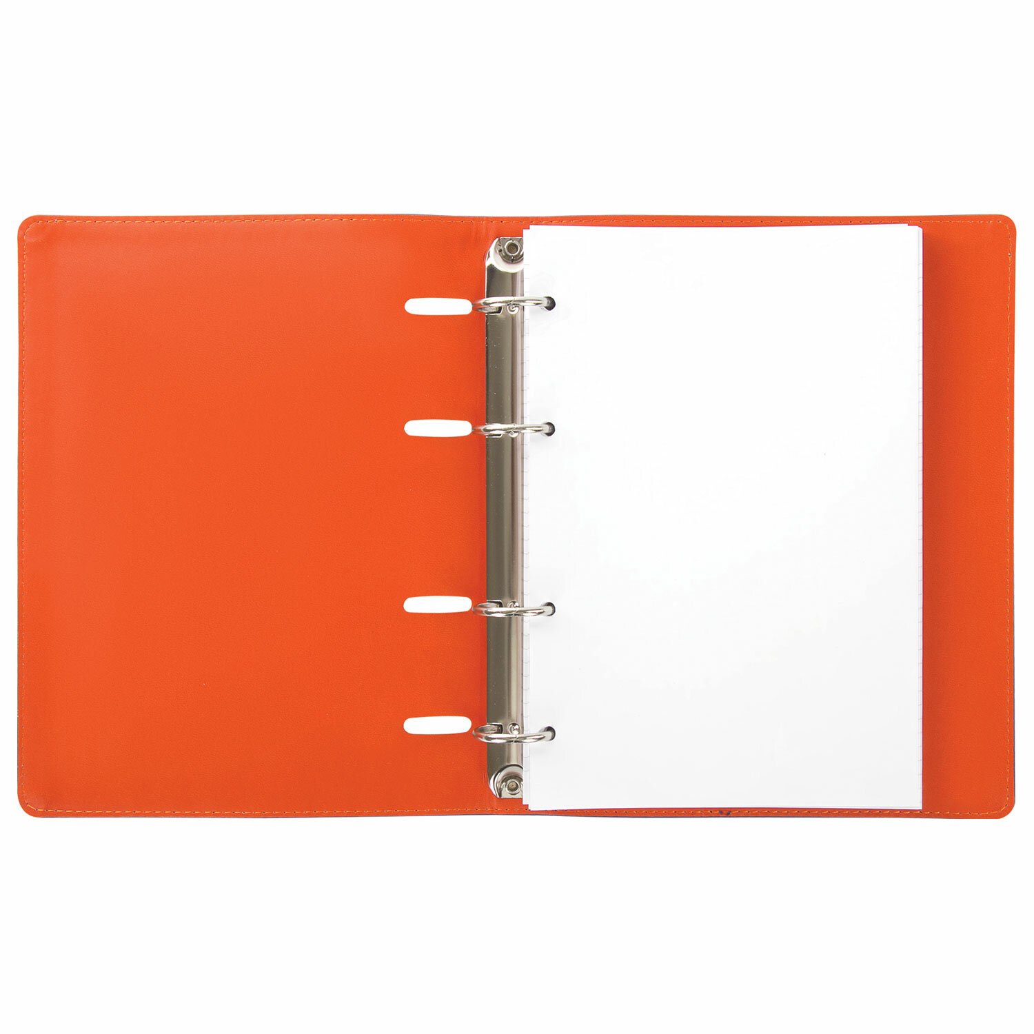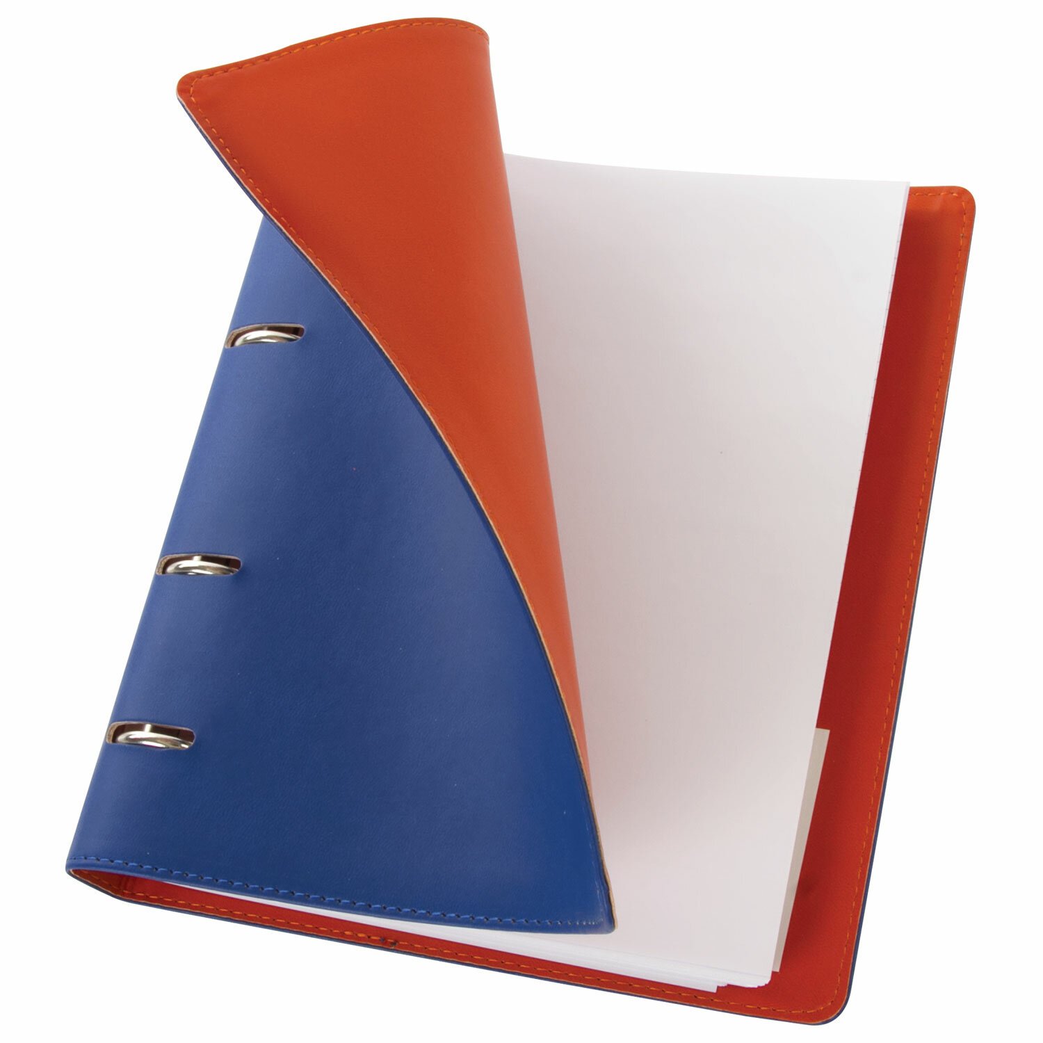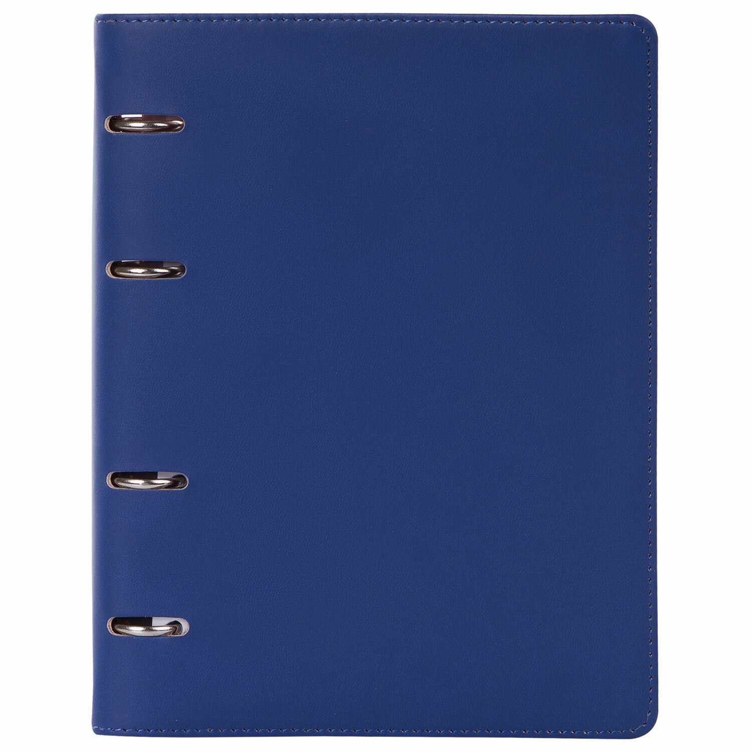 Блок состоит из 120 листов офсетной бумаги белого цвета плотностью 70 г/м2. Линовка - клетка с полями. Мягкая интегральная обложка с прошивкой по периметру и вырубкой под кольца выполнена из износоустойчивого материала с текстурой под гладкую кожу. Цвета обложки выполнены на контрасте - верхний синий цвет, внутри обложка красного цвета. Формат А5 является стандартным и обеспечивает комфортное ношение в рюкзаке/ранце или папке. Оборудована кольцевым механизмом с 4-мя кольцами для подшивки сменных блоков, что позволит носить на учебу/работу всего одну тетрадь с возможностью добавлять и менять листы. Полезный диаметр колец - 25 мм.