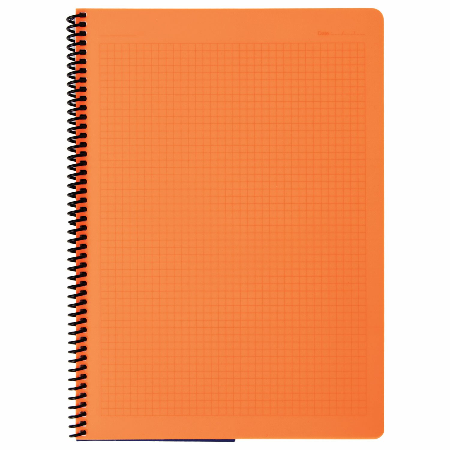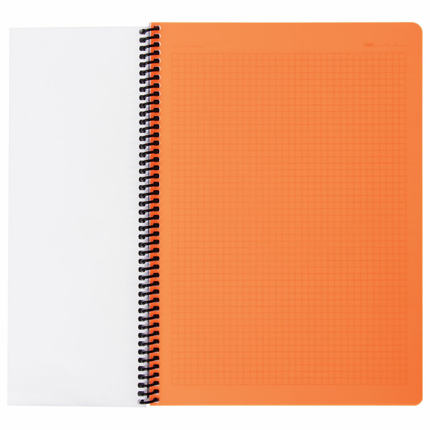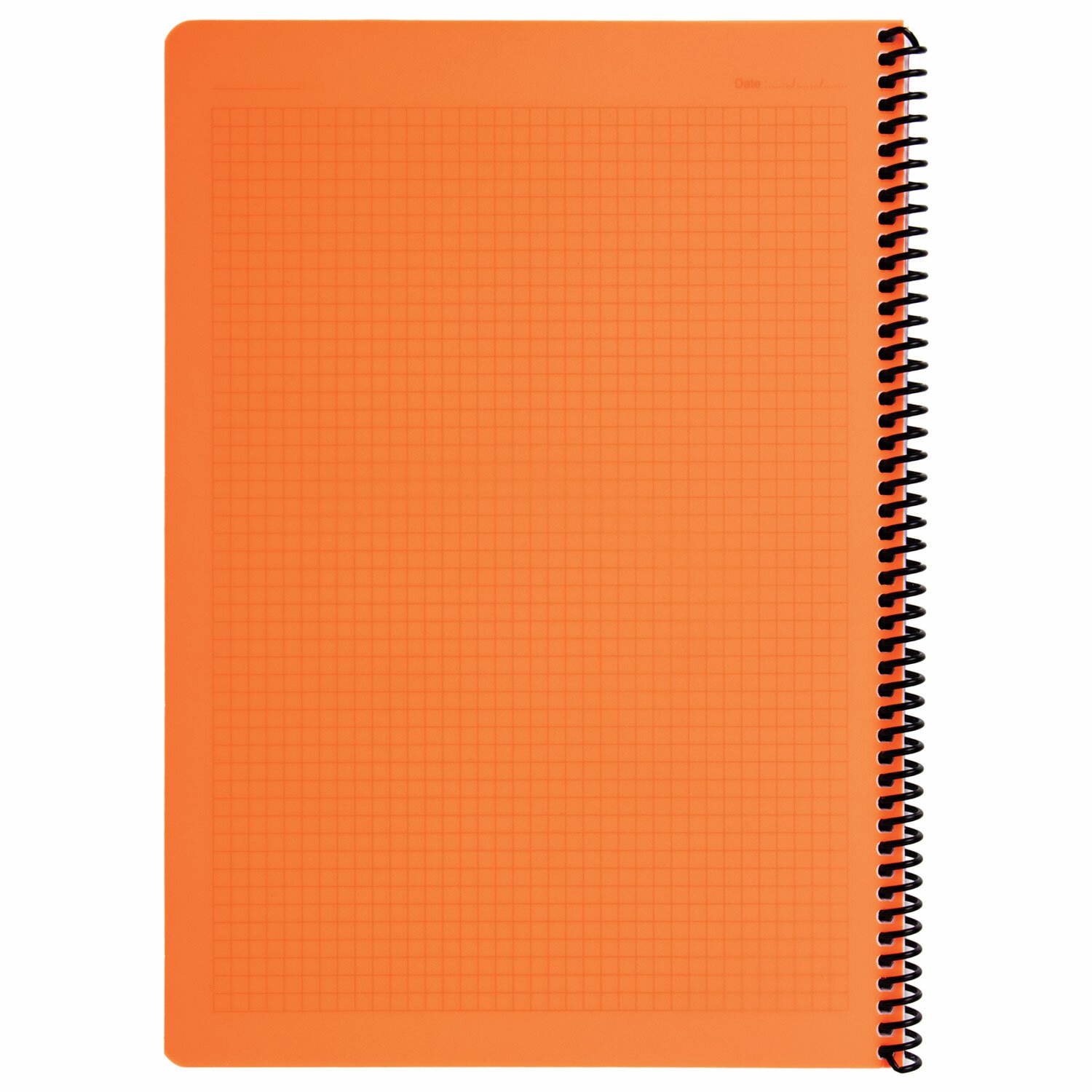 Пластиковая обложка оранжевого цвета надежно защитит внутренний блок от повреждений. Внутренний блок содержит 80 листов офсетной бумаги плотностью 60 г/м2 и белизной 100%. Линовка блока - в клетку с полями. Листы соединены евроспиралью. Формат А4 (210х297 мм).