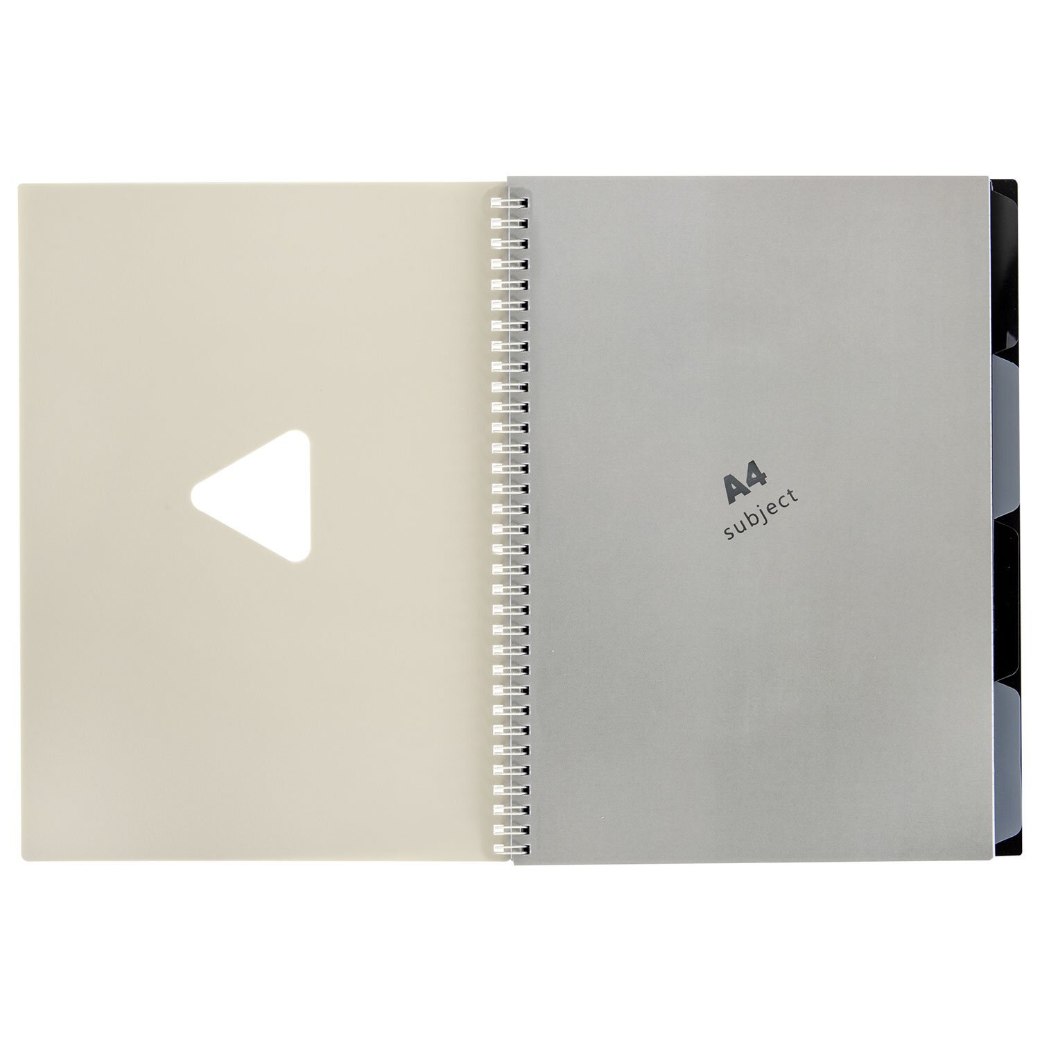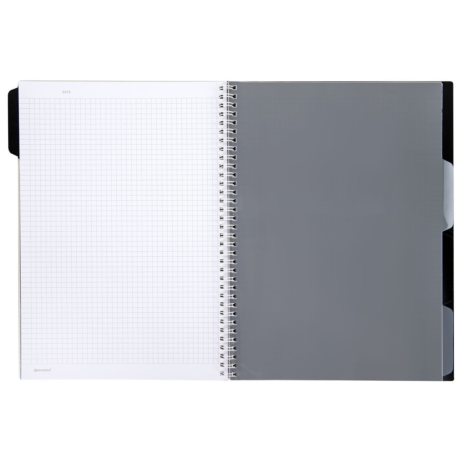 Тетрадь обложка пластик, А4 80л. гребень, 4 съемных разделителя, клетка, BRAUBERG, серый, 405365
